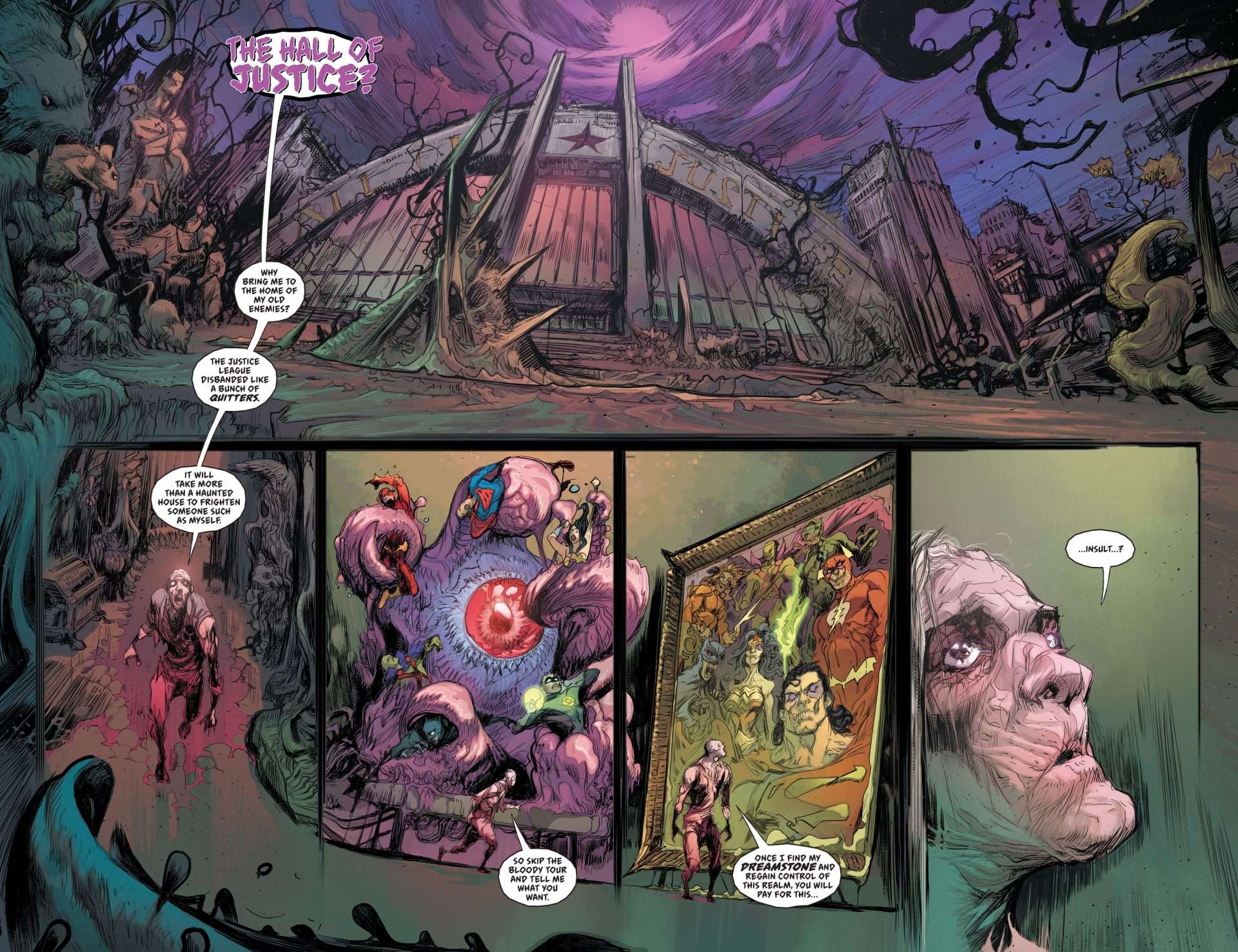 The main Knight Terrors story will take place over four issues written by Williamson with art by Giuseppe Camuncoli, Stefano Nesi, and Caspar Wijngaard, in which Boston Brand—a.k.a. Deadman—serves as the supernatural tour guide! Following the events of Knight Terrors: First Blood #1, everyone in the world is trapped inside their nightmares, and Batman and Deadman are trying to figure out who Insomnia really is…and why he wants revenge on the heroes of the DC Universe! Knight Terrors #1 is available at comics shops on July 11 with variant covers by Francesco Mattina and Alex Maleev, a 1:25 variant by Evan “Doc” Shaner, a 1:50 by Alex Maleev, a 1:100 by Ivan Reis, and a Darkest Hour cover by Reis.