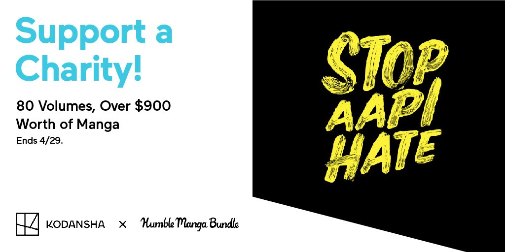 For this Humble Bundle, Kodansha will be leveraging the purchasing power of each bundle – whether it’s at the $1 tier or the $30 to donate a portion of the proceeds to worthy causes! Choose where the money goes among Kodansha and our preselected charity, the Stop AAPI Hate organization – or choose a charity of your preference via the PayPal Giving Fund.