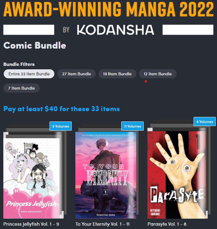 Here’s what you get with each tier and overall, it’s $939 worth of awesome manga!