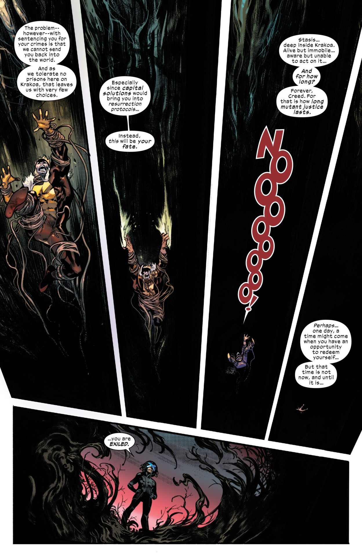 Since all mutants are Krakoan citizens & cannot be tried by human courts (House of X #3) and since at the time of the mission in question Krakoa had no established laws, there was no jurisdiction to which Sabretooth was subject to that prohibited his actions. That doesn’t excuse his actions on a moral level, but given the dynamics of his citizenship and Krakoa’s lack of codified laws at the time, he is not legally guilty of any crime. This makes his trial definitively” ex post facto”, which again many consider to be a violation of individual rights. It’s also critical to accurately contextualize Sabretooth’s actions; he was sent on this mission by Xavier, placing him in a situation primed for violent interactions with militarized human forces of a known anti-mutant organization. And if you can put somebody on trial “ex post facto” for killing humans, half of the council should also be placed on trial on the same grounds. We haven’t even mentioned that he was tried and sentenced without representation, without testimony or any ability to plead his case.