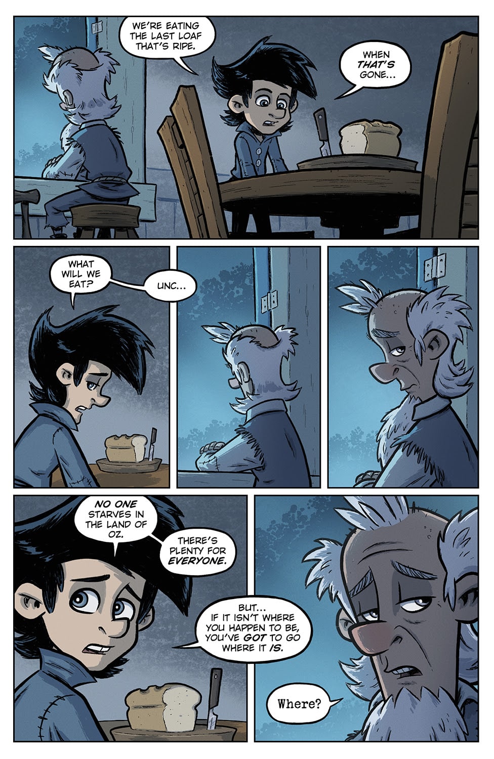 As noted, Hutchinson is a talented, at times poetic, writer, and he’s a nice man, too (I had the chance to meet him and purchase this TPB at Emerald City Comicon a few months back). And while Alisson Borges (a man) and Kate Finnegan’s artwork isn’t the most inventive, it certainly brings Oz to life, working wonders with panel layout, green shading, and inventive character design (like I said, that Witch! And the Cowardly Lion is a charmer).