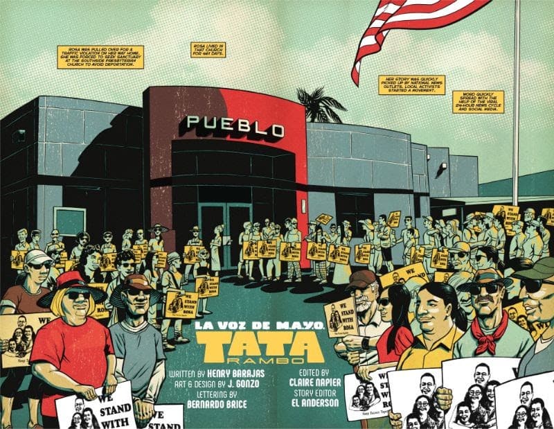 Barajas’ interventions also expanded on this point as his book is a work of comics journalism whose intention is to shed light on a history that doesn’t make it into popular history books. The story of Tata Rambo deals with generational trauma and how it led to a movement that fought for better working and living conditions for the Pascua Yaqi Tribe in Toucson, Arizona. One of the things Barajas added to the conversation considered the inclusion of supplemental material in these type of books. Getting people in touch with actual documents and news clippings can only further the learning process, something La Voz de M.A.Y.O. does very well.