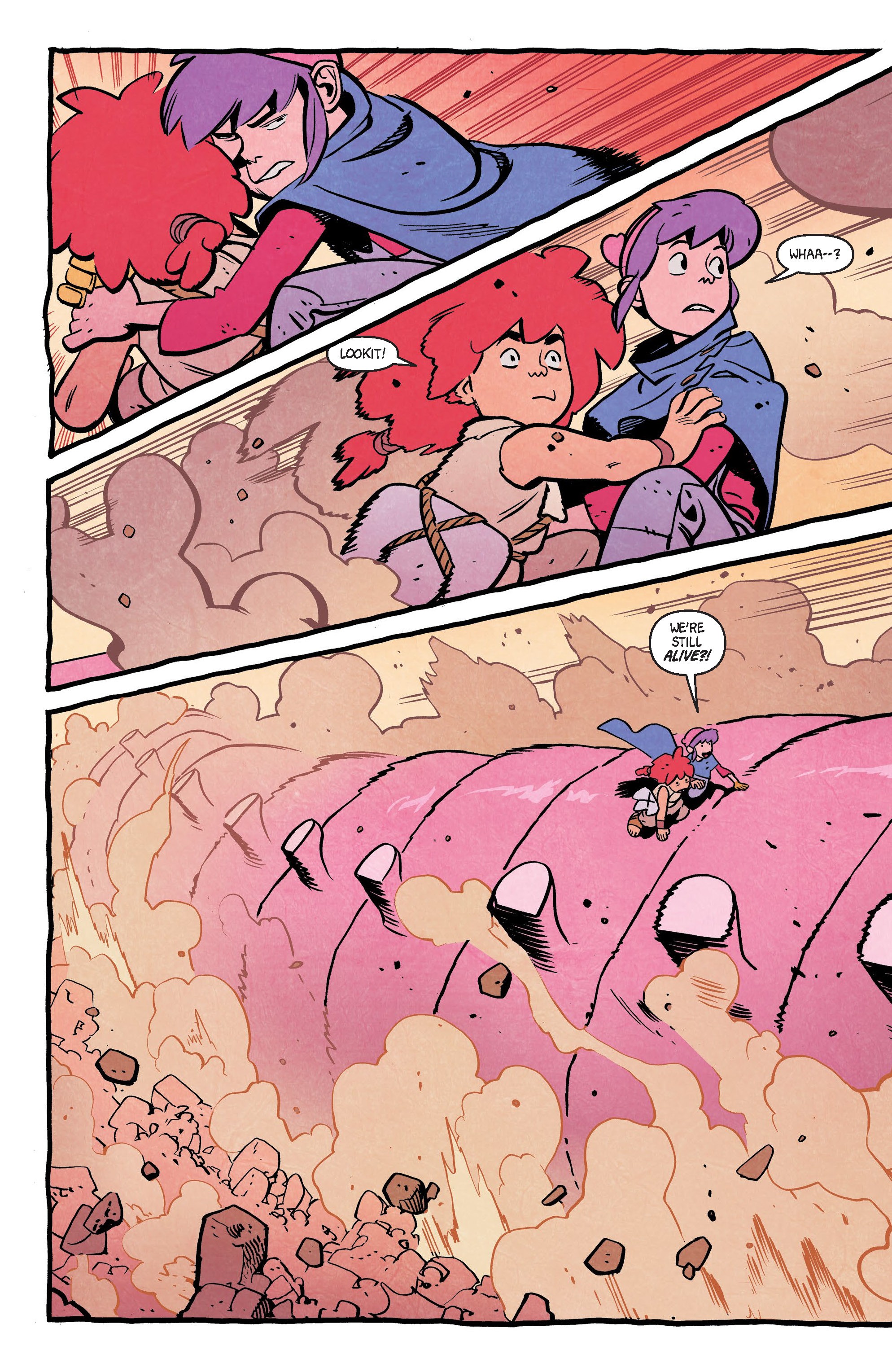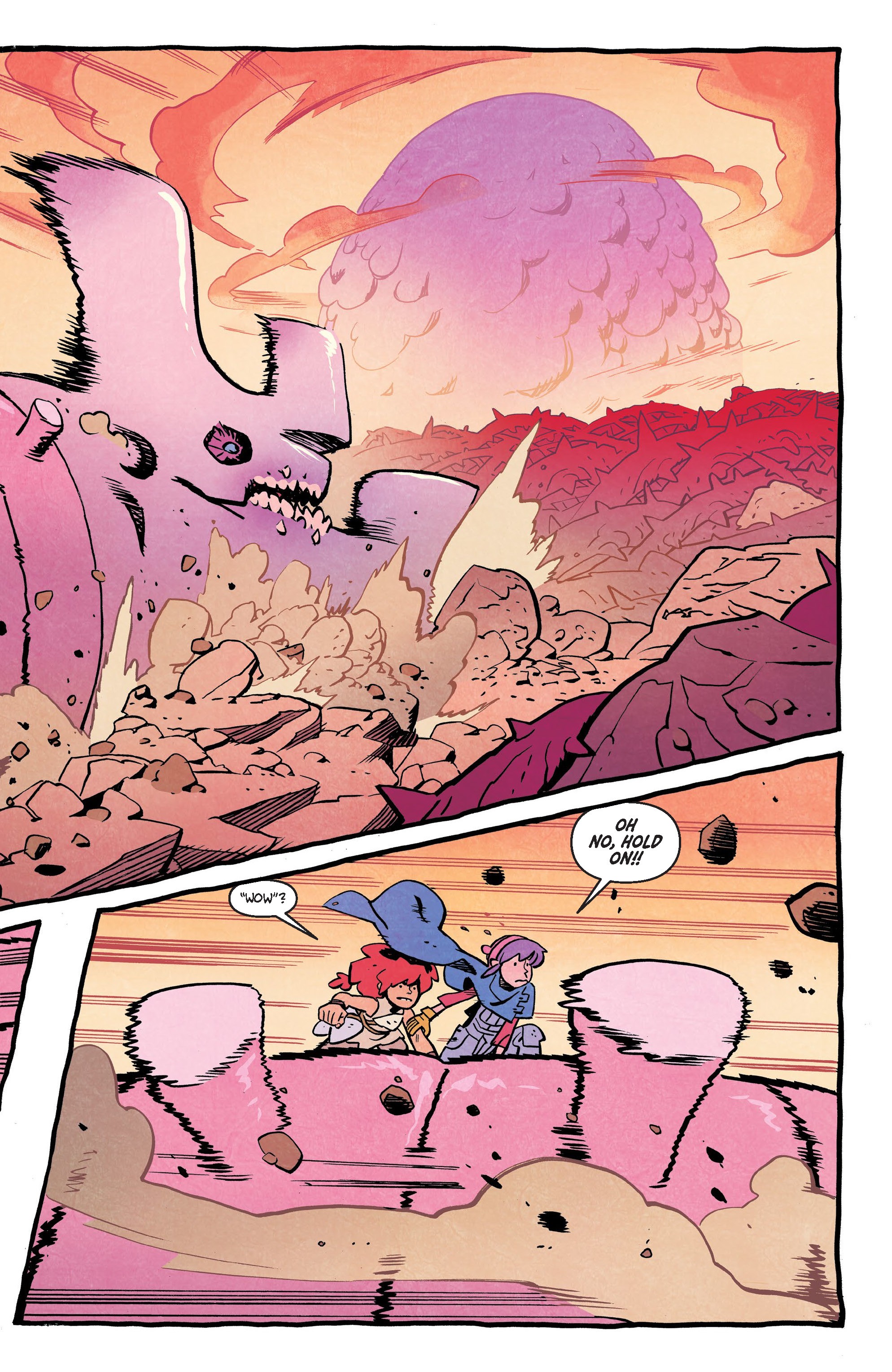 In the final arc of our incredible tale, we learn the origins of the strange creatures that have invaded the planet, draining it of resources—as well as that of fellow adventurers Gor and Nomi. All the threads converge inside the mysterious giant egg! With the fate of their family and possibly the whole world at stake, can Jonna and Rainbow rescue their dad, battle countless monsters, and tell each other how they really feel?