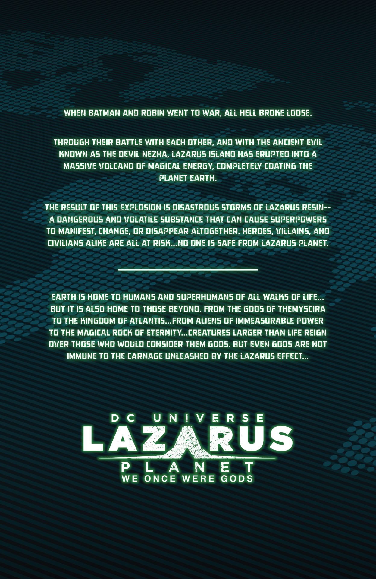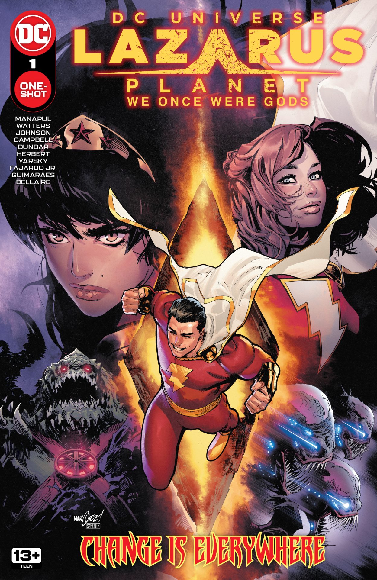 As the Lazarus rain beats down upon planet Earth, human beings are only a fraction of those affected by this transformative upheaval–enter: We Once Were Gods. This series of vignettes explores Lazarus Planet’s effects across the many extraordinary locations and creatures in the DC Universe, and like their human counterparts, these beings are in for some big changes. Can Themyscira survive the resurrection of every invading army that ever graced its shores? Will Martian Manhunter survive a psychic link to a Doomsday nest? What happens when the monsters from the Trench gain the ability to breathe air? And look out, Shazam Family…the Rock of Eternity is about to get rocked.