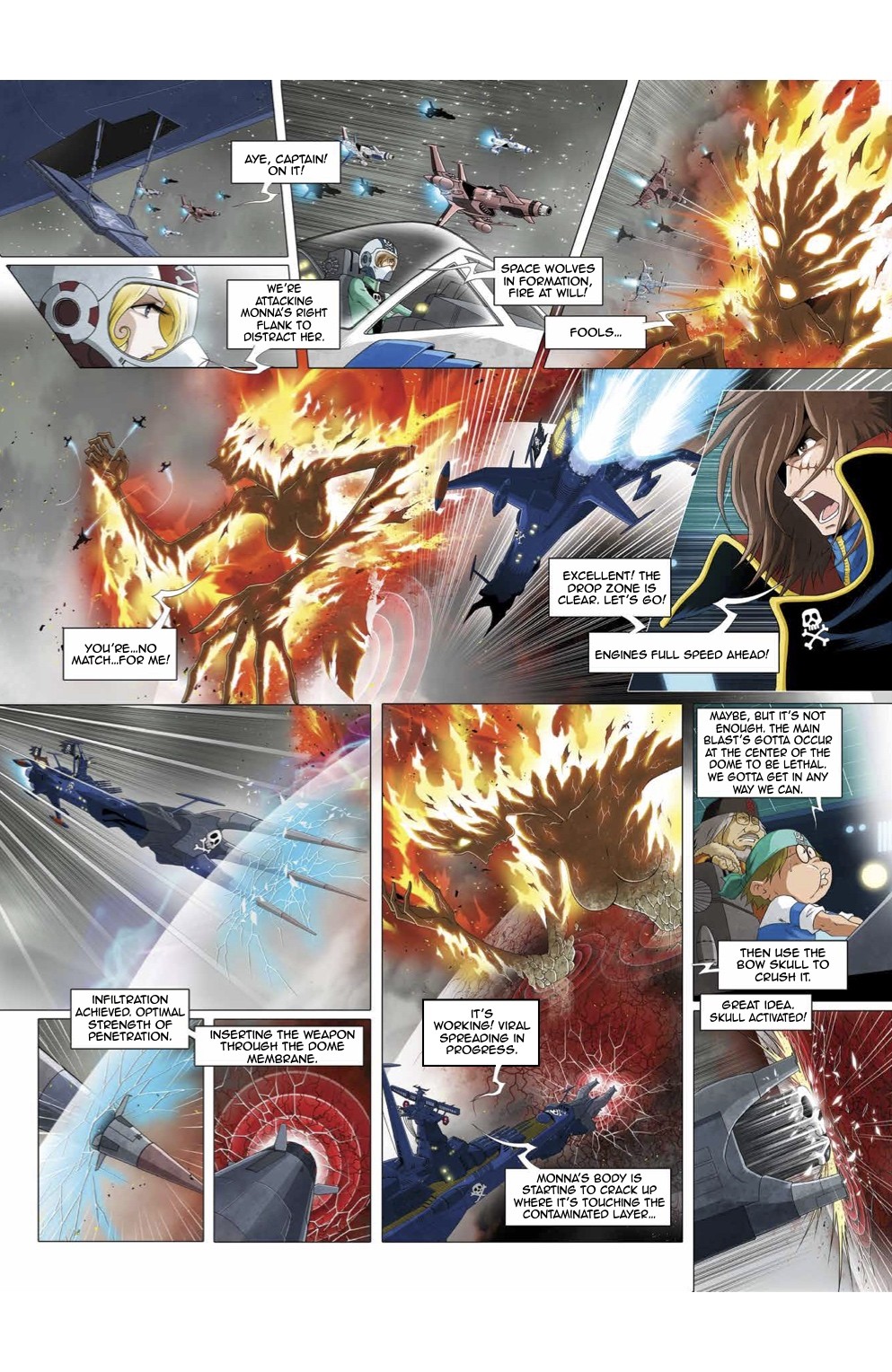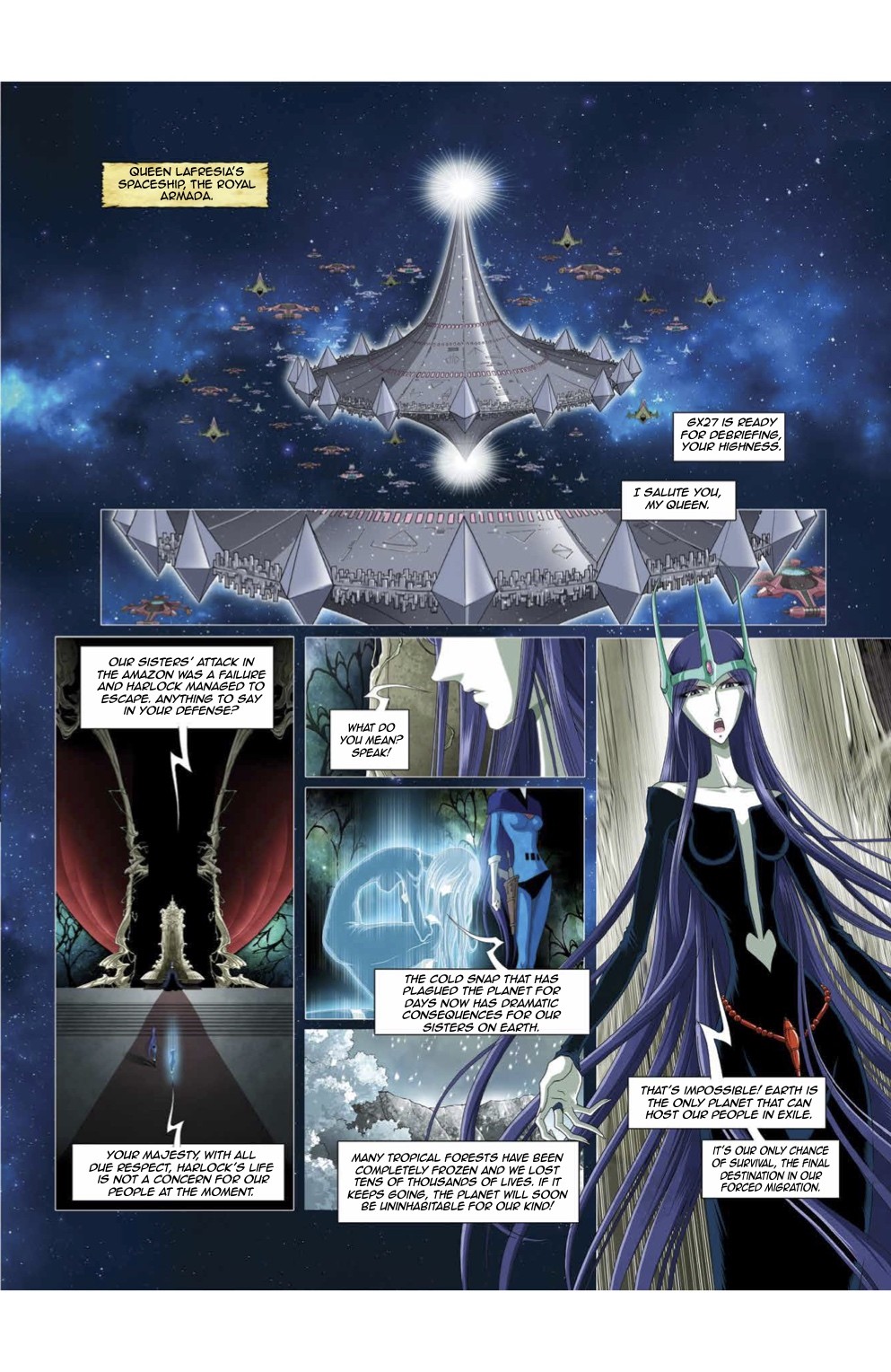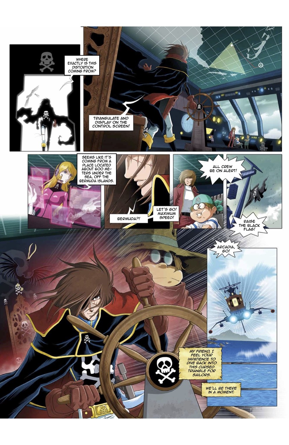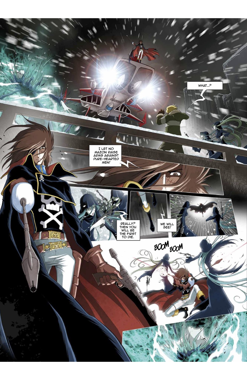 Set within the timeline of the original series, this brand-new CAPTAIN HARLOCK adventure marks the beginning of an original new story arc. Planet Earth is threatened by an upcoming invasion by the Mazon and despite being banished as a pirate, Captain Harlock won’t give up trying to save the world. This time, the source of danger comes directly from Earth, not outer space. A team of scientists discovers a Mazon mausoleum where they find information about terrifying genetic manipulations and a destructive power capable of either providing the Mazon with immortality or putting an end to their civilization. The unprecedented cold spell hitting Earth might only be a taste of what this new enemy has in store… Will Captain Harlock and his crew manage to solve this mystery and save the Earth from yet another menace?