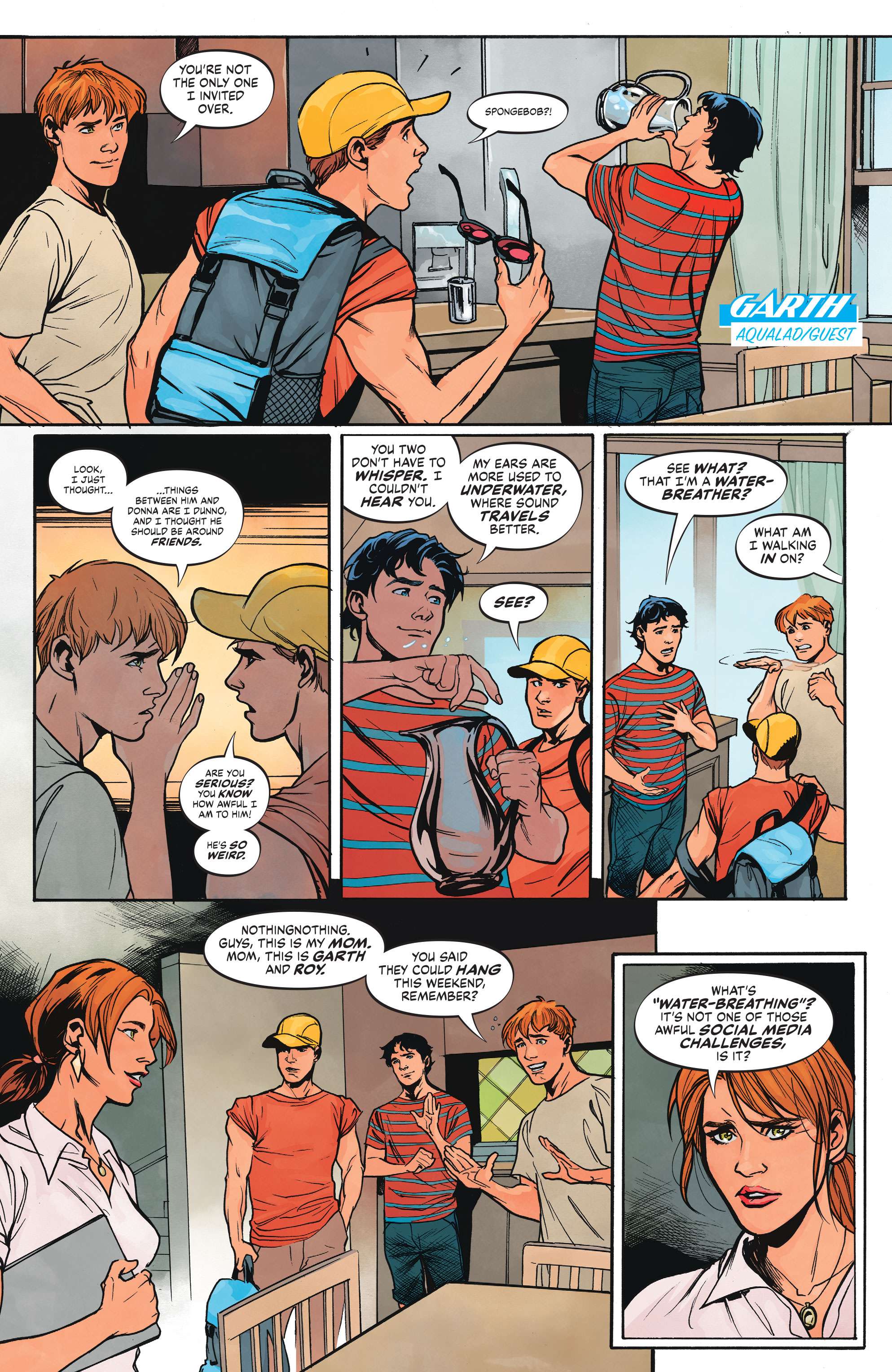 BREAKING UP IS SUPER HARD TO DO! America’s sweetest situationship breaks hearts–including Aqualad’s and Wonder Girl’s own!–when Garth realizes a part of him isn’t fully in it with Donna. To heal the wounds, Wally invites Garth and Roy to a sleepover at his folks’ home, where Aqualad opens up about his fluid sexuality. Meanwhile, Mal assists Bumblebee in an unexpected battle, giving him a taste of the Teen Titan he could be…