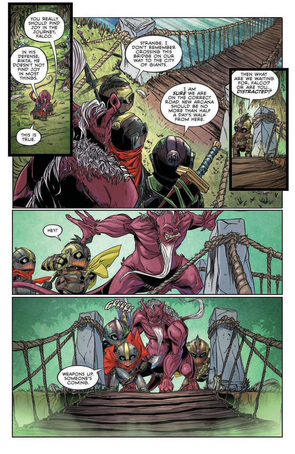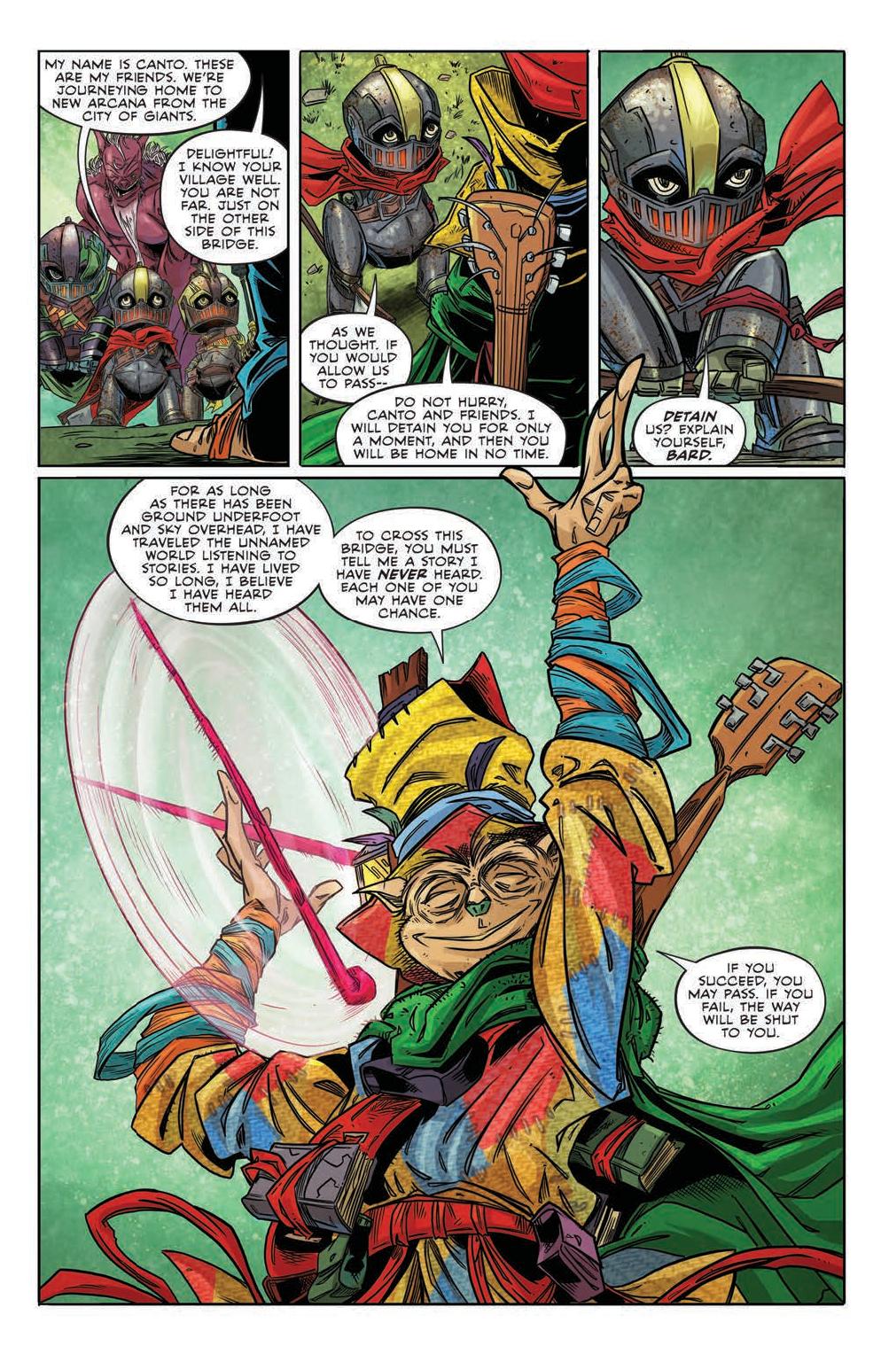 The lovable knight Canto, his friends Falco and Rikta, and their Malorex mount are returning to the Clockwork Kingdom. But to get home, they must cross a bridge guarded by a mysterious bard. His price? A story he’s never heard in all the Unnamed World. A phenomenal collection of stories by David Booher and some of comics’ top artists expands the world and adventure of the fan-favorite Canto series between Canto II: The Hollow Men and Canto III: Lionhearted.