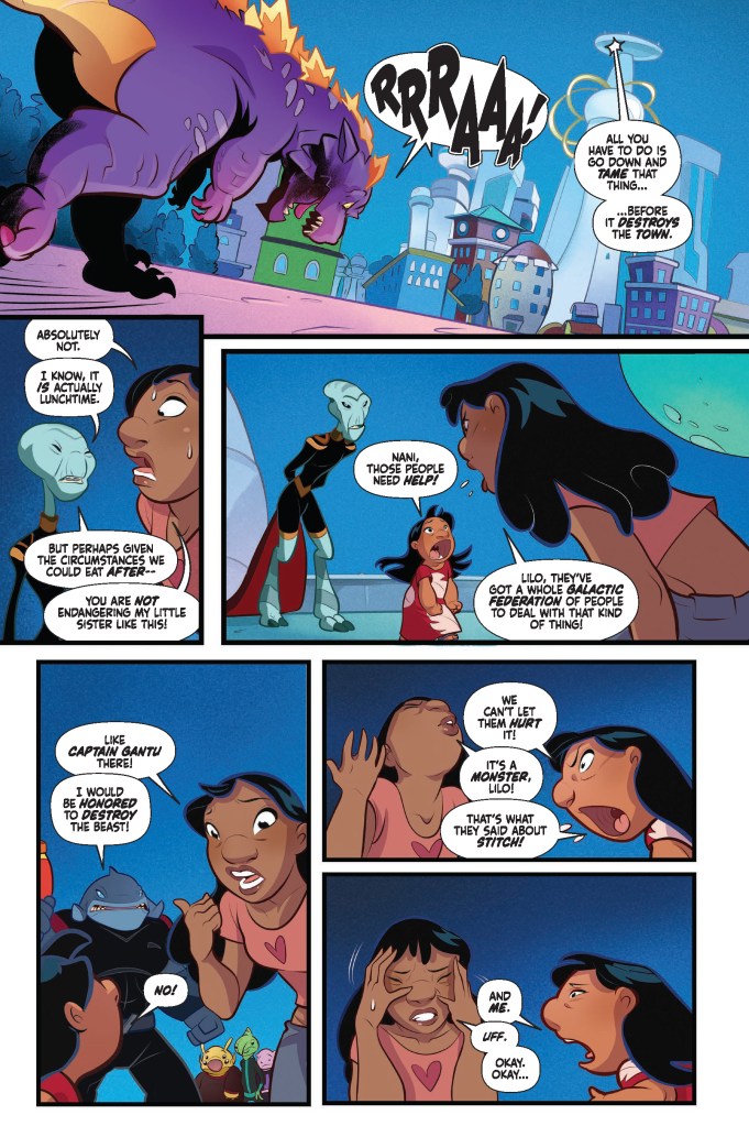 Readers will find the day to day chaos left in the wake of the little force of nature, as he further gets adjusted to the idyllic island life of Hawaii, and learns the meaning of ‘ohana becoming closer with his found family. Pages feature quick profiles on cherished characters including Nani, Cobra Bubbles, Dr. Jumba Jookiba, Mr. Pleakley, and Stitch. Early in the story, bookworms will love Stitch’s stylized depictions of surfing the Pacific waves, and it only gets more fun from there!