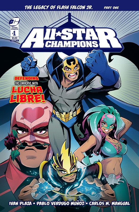 Daniel Domingez is just like everyone else his age, trying to discover his purpose in life. The only huge difference is—as he struggles to save money and take care of his father, a now-retired legendary luchador—Danny will find himself having to live up to his father’s legacy as he uncovers the truth behind the sensational sport of lucha libre.””Hiding in plain sight, all lucha libre organizations are a secret network where fighters from all over the planet—and otherworldly challengers—compete to be selected as part of an elite group to protect our planet from extinction! Witness how Danny and friends thwart super-villain rudos, stop alternate universe invasions, and all sorts of monsters as he gets the hang of being an All-Star Champion!