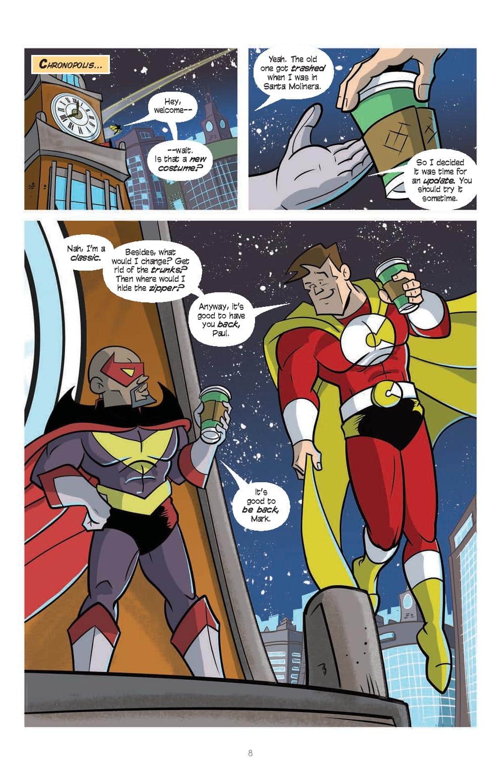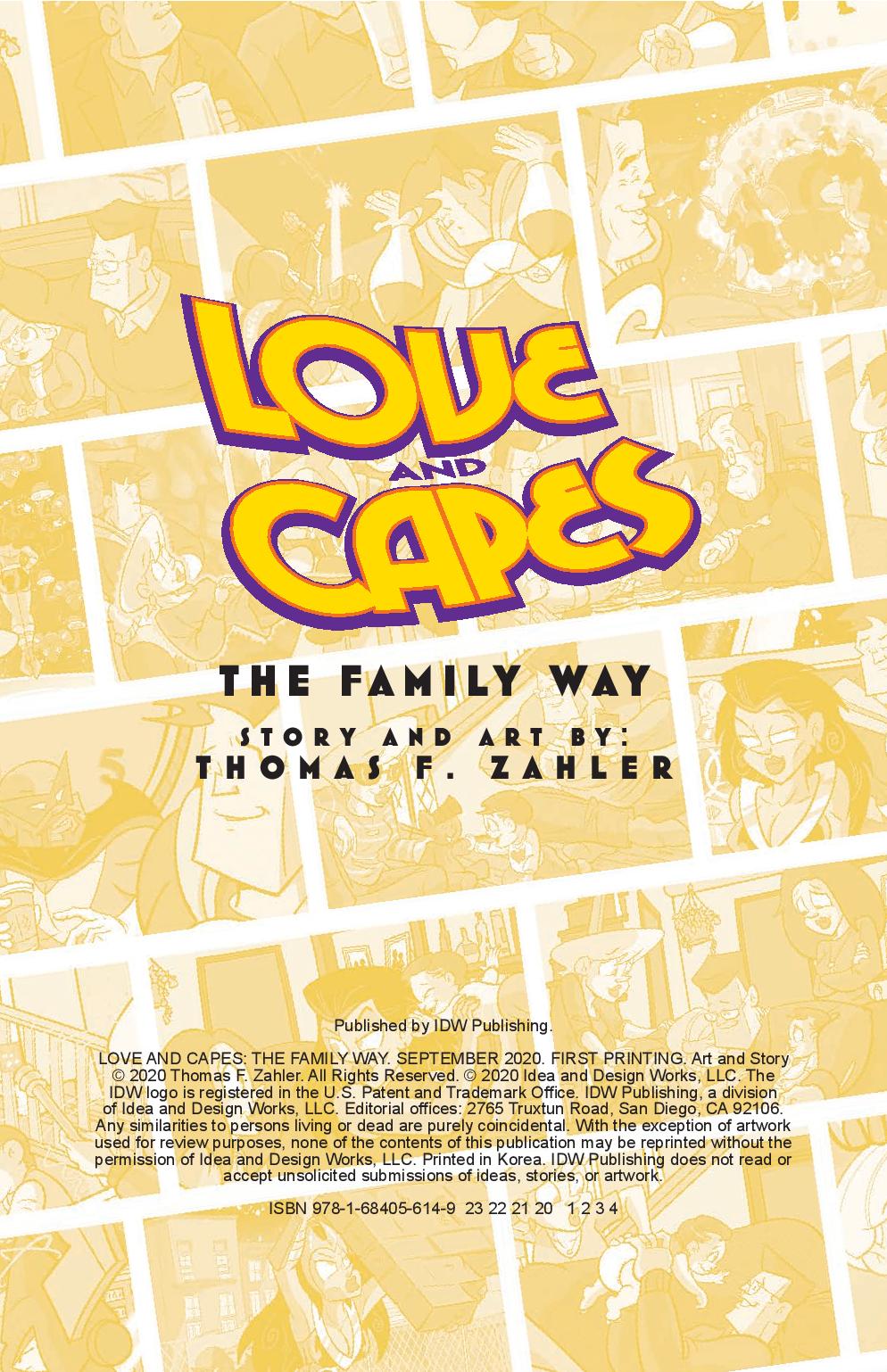 Fans looking to catch up on the series will be pleased to learn that the first three collections of Love and Capes will be reprinted and offered again in August. Also, the entire Love and Capes series is now available digitally from IDW and ComiXology. In addition, last February, Zahler offered a free digital six-page Love and Capes Valentine’s Day story that has never been printed. For those who missed it, click here to download the comic!