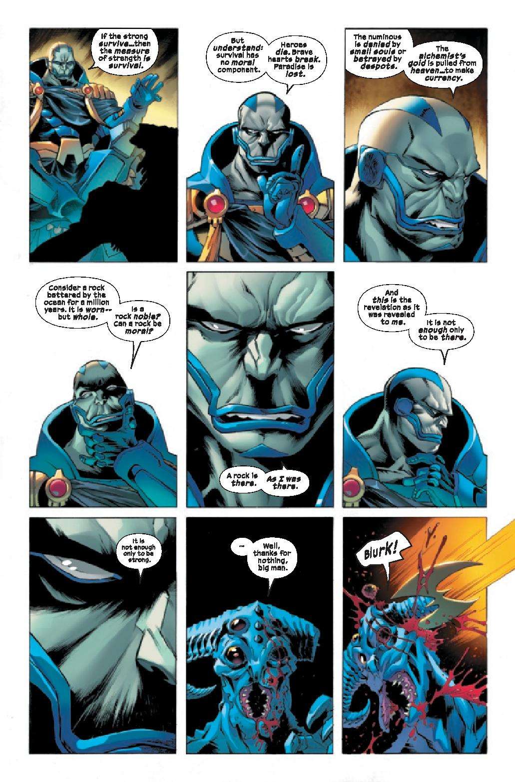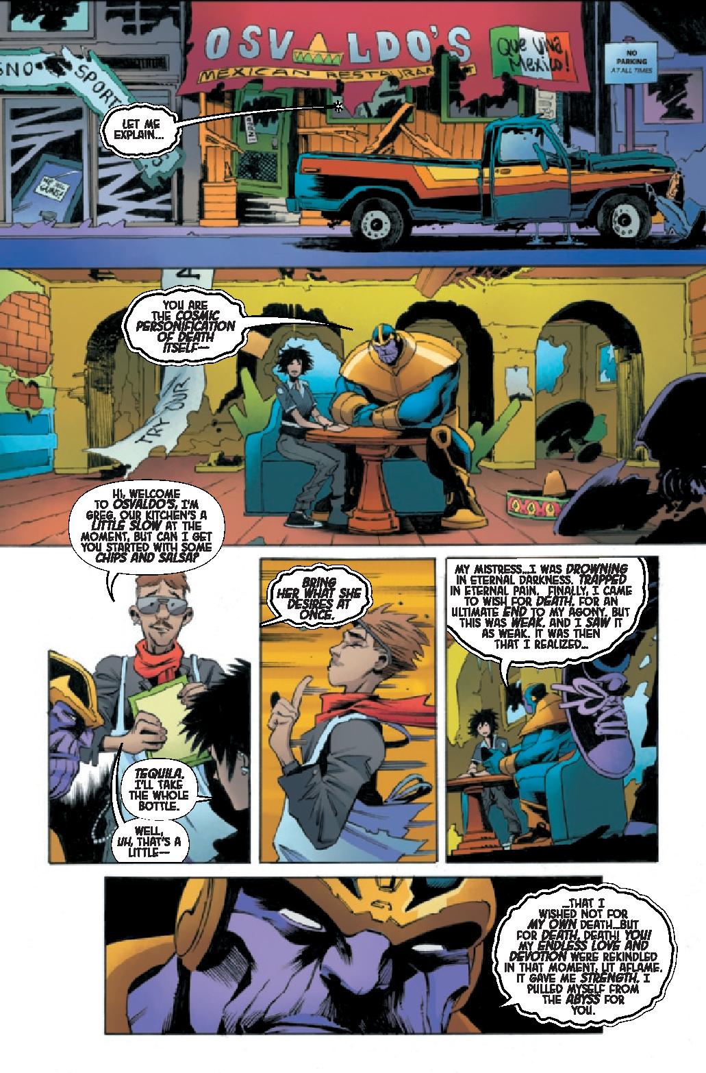 Thanos #1 challenges you to not think. The response to Thanos’ actions feels a little scaled back and very late either signifying his swiftness in action or everyone else is on vacation I guess. But, like those big apocalyptic films, the comic begs you to not dwell too much about that and enjoy the symphony of destruction.