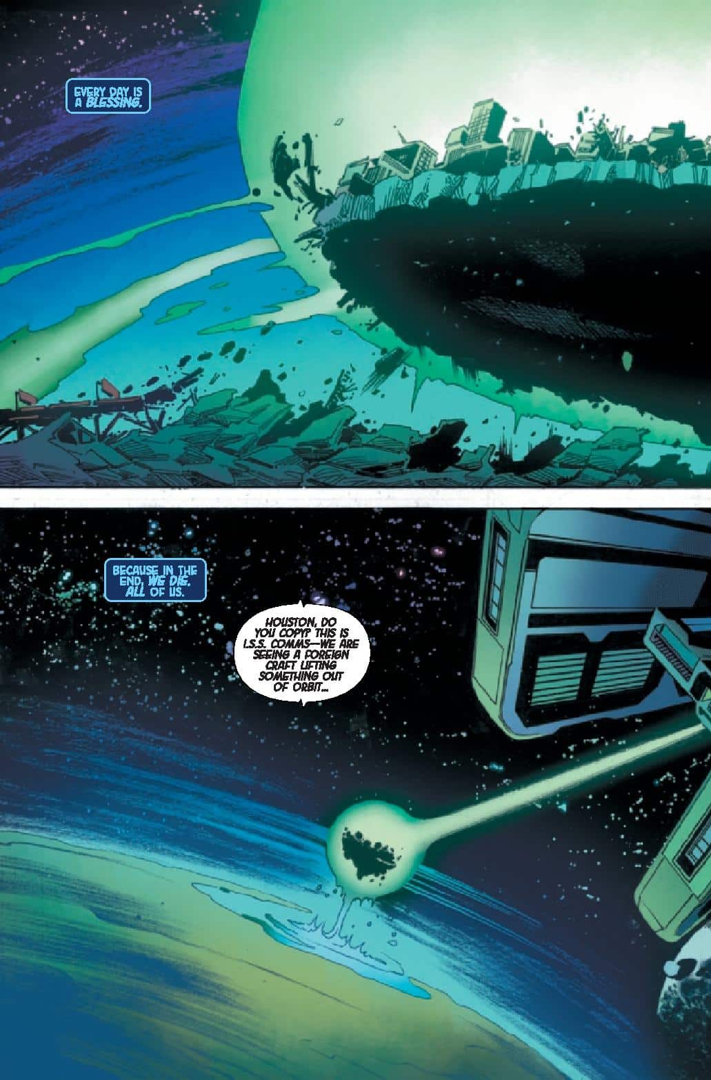 Written by Christopher Cantwell, Thanos #1 isn’t bad at all. I’ll admit, I haven’t read recent comics featuring him and it’s been such a long time since his ongoing series, I had no idea where he was/is and what his status is. But, this is his return and it’s very Independence Day.