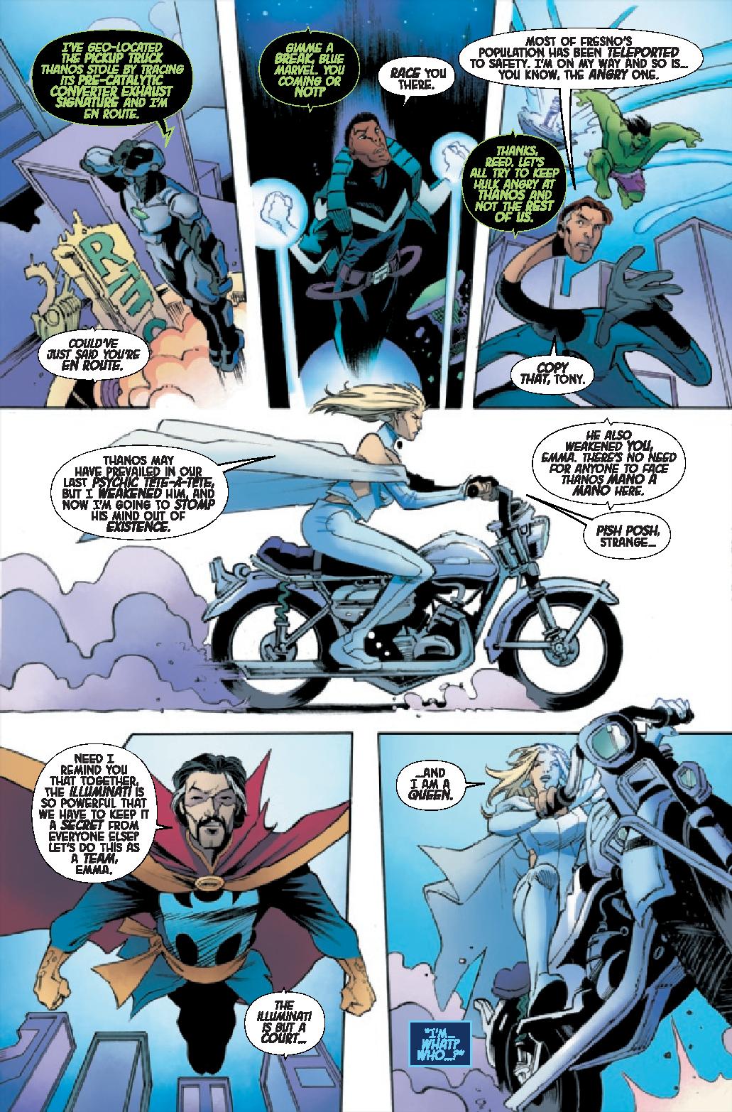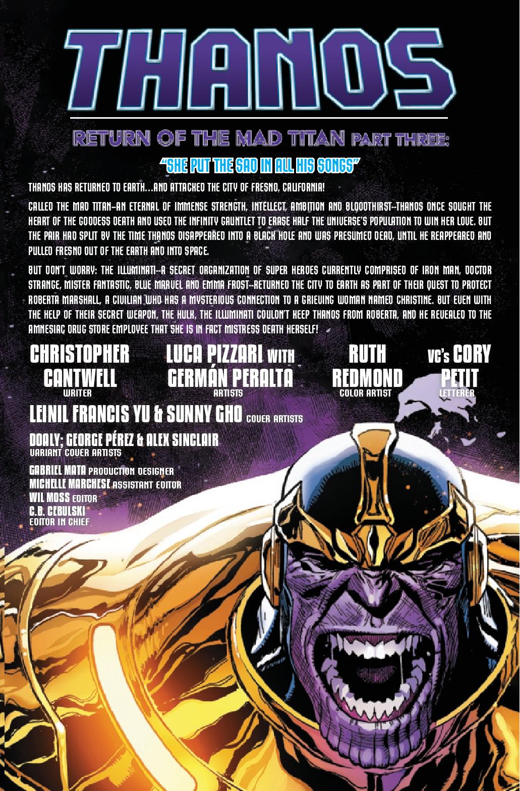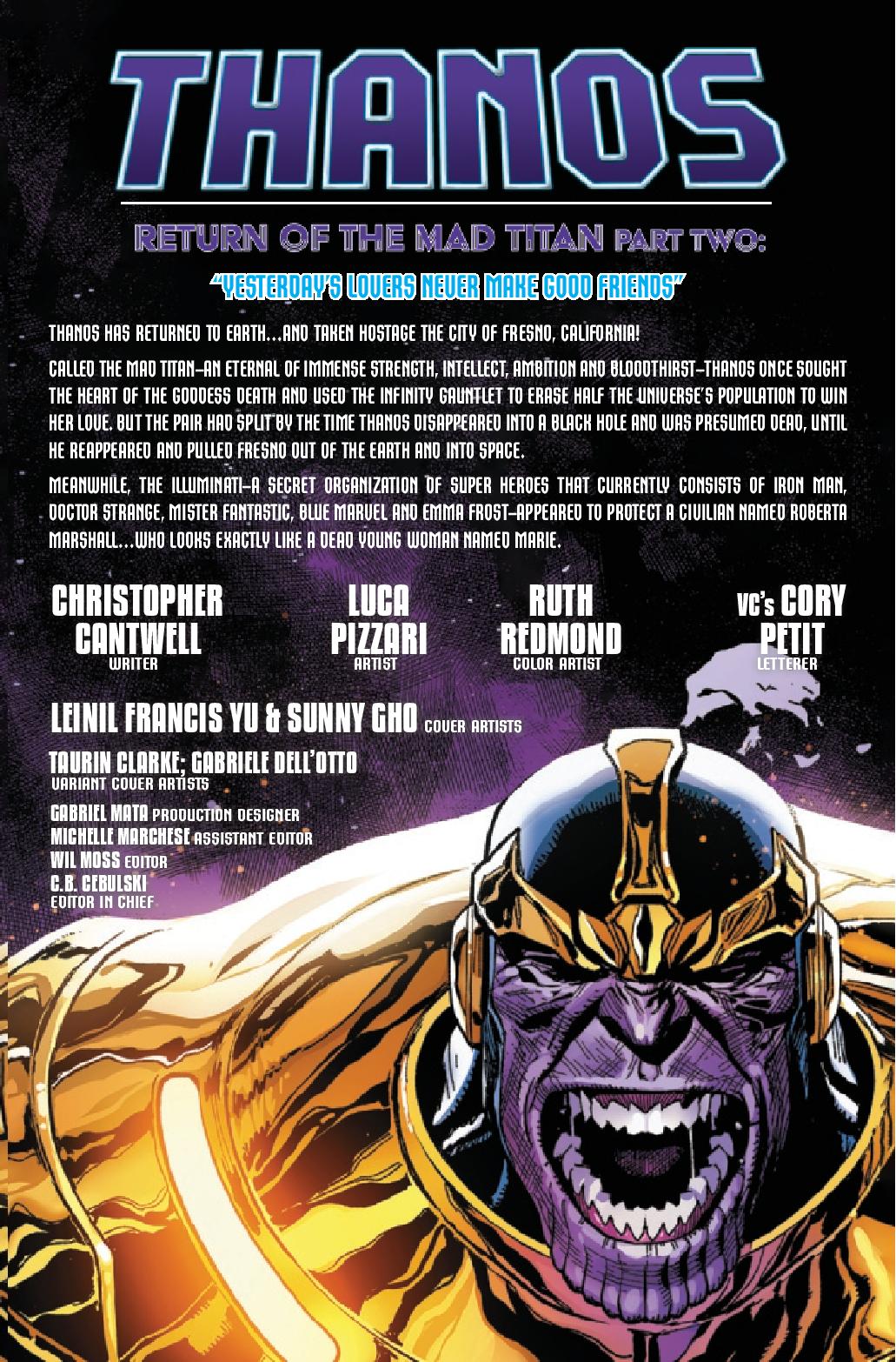 The Mad Titan descends upon Earth to retrieve something he has lost. And the Illuminati must band together to stop him, because they’re the ones who hid it from him! Thanos #1 kicks off the next chapter for the cosmic titan, and it’s… interesting.