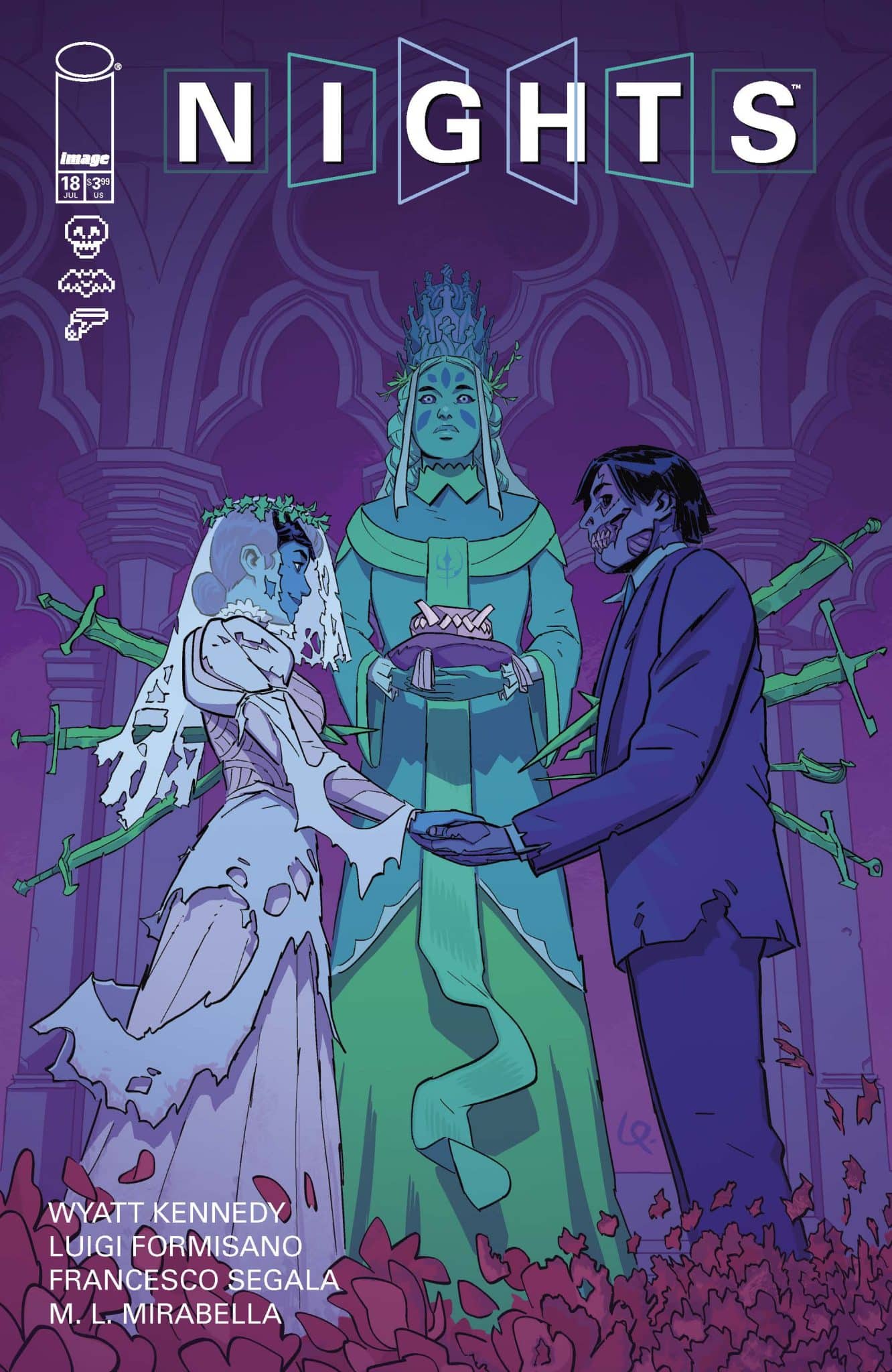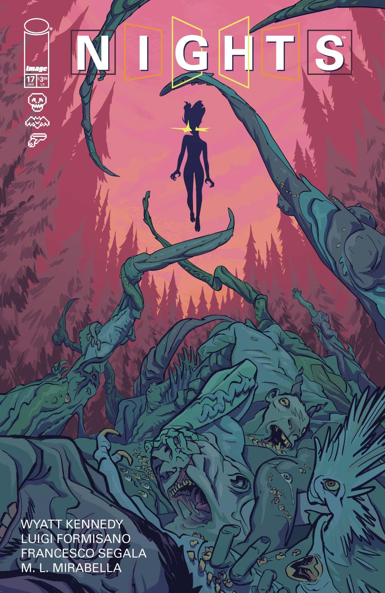 Featuring covers illustrated by Formisano, The Season One finale issue, Nights #12 (Lunar Code 0824IM402), will be available at comic book shops on Wednesday, January 15, 2025. The Season Two premiere issue, Nights #13 (Lunar Code 1224IM238) will be available at comic book shops on Wednesday, February 26, 2025.