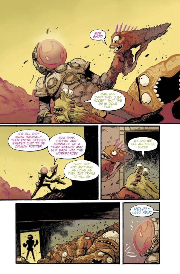 In Nights, supernatural creatures casually exist amongst humans, and America is made up of 31 states. Vince Okonma has lost his parents, moved in with his secret mercenary cousin and his video game-making roommate, and befriended “the greatest vampire who’s ever lived.” And that’s just the beginning. The road to the Season One finale has been full of shocking twists and turns, but vampire Gray’s destiny is at last revealed in Nights #12. An old enemy reemerges to deliver unbelievable carnage, and no one is safe. This is the end of everything and the start of something new in an extra-packed issue with massive consequences. Everything comes to a head in a status-quo shifting season finale.