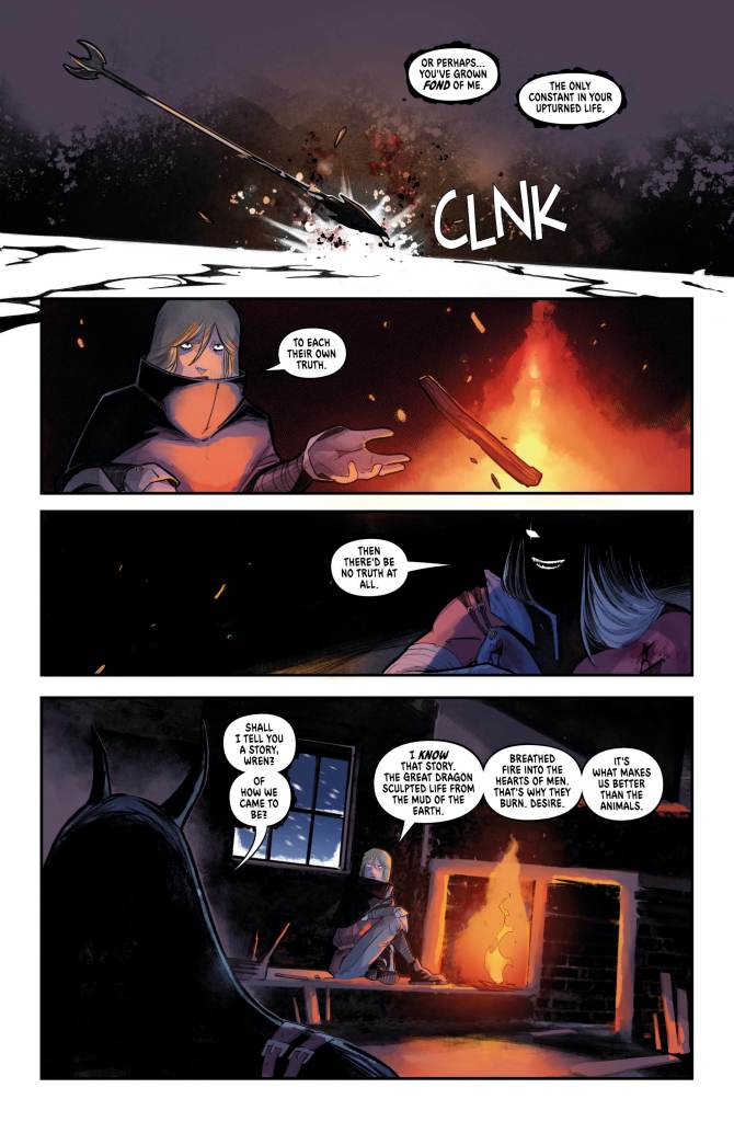 The Boy’s view of the Feral Woman grows more complicated as she embraces her role as his mentor. They’ll have to work together if they hope to survive the dangerous journey south and the bloody ambush that awaits them.