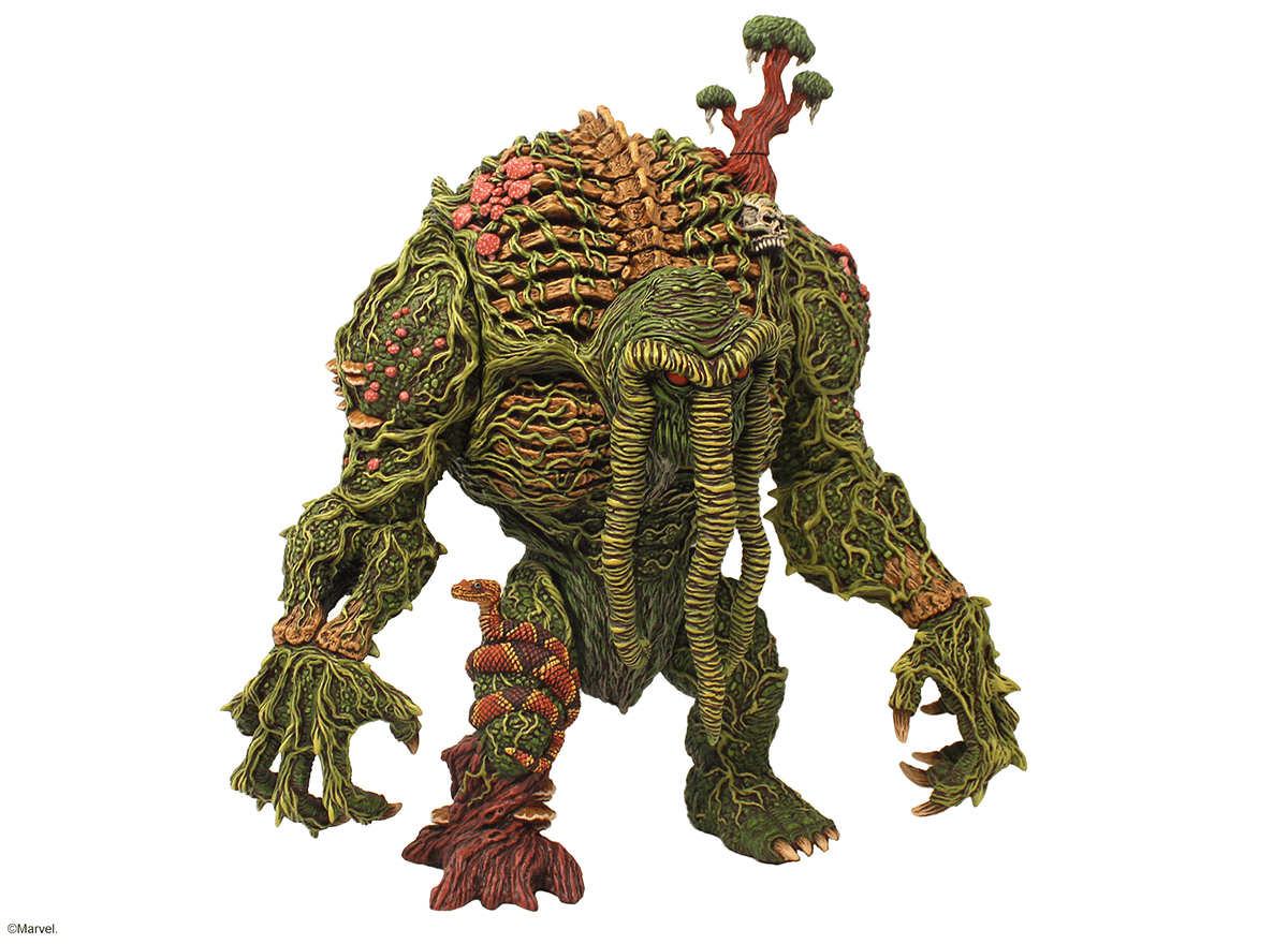 Emerging from the swamp, it’s Marvel‘s Man-Thing! This exciting collaboration with famed toy Designer James Groman (Madballs, Kaiju Killer, King Korpse) brings his unique style to full display with this limited edition Man-Thing Soft Vinyl Figure. With 3 Points of articulation, this massive 12 inch tall figure is a sight to behold. James poured so much thought into this sculpture that you can get lost in the details for hours.