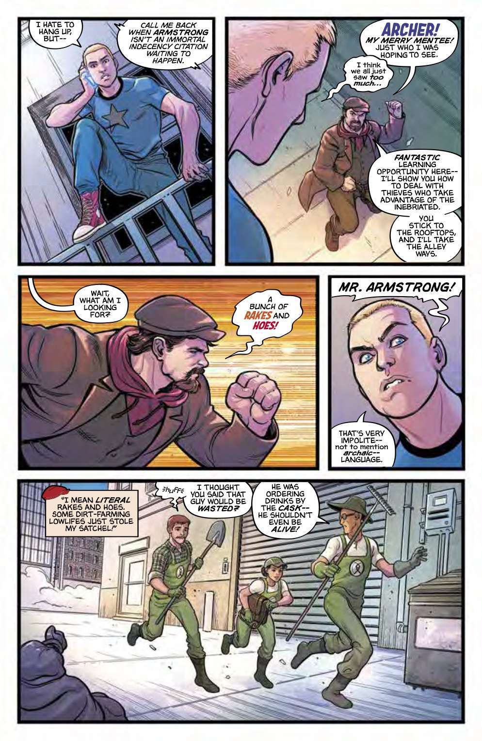 RL: I feel like there’s a habit, and depending on your perspective, a problem, of people trying to book various books in very specific boxes. And I think ARCHER & ARMSTRONG FOREVER is a book that a lot of people might think of in recent years as a comedy book, and assume they’re not getting anything other than jokes. But for me, A&AF has always been a book about this fantastic and unexpected friendship first, an action-adventure series second, and then a fun (and often funny) book third. I think what Steve Foxe, Marcio Fiorito, Alex Guimarães, and Hassan Otsmane-Elhaou are doing really emphasizes of all of the title’s strengths and even pushes in some new, hopefully unexpected directions.