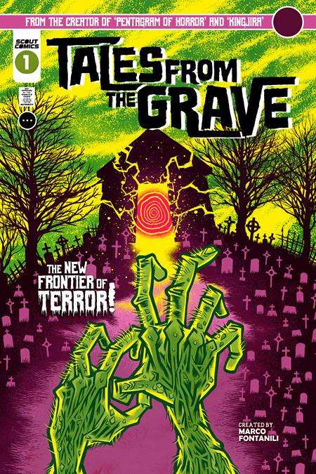 Space Outlaws #1 (Scout Comics) – Marco Fontanili brings his gonzo visual sensibilities to the sci-fi and western genres in Space Outlaws #1. It’s Terminator meets Alien in Texas as a killer robot is chasing after an escaped alien parasite convict in the deserts of the Western USA. Fontanili makes Space Outlaws a memorable read with intricate panel layouts and a deadpan sense of humor (A Western gunmen is described as “Armed not dangerous”) He’s also not afraid to prob the darker side of the human psyche with a supporting character who is an alcoholic farmer down on his luck and about to hang himself. As evidenced by his previous work on Pentagram of Horror and Kingjira, Marco Fontanili is the shlockmeister supreme of indie comics, and Space Outlaws is another hit for him. Overall: 9.0 Verdict: Buy