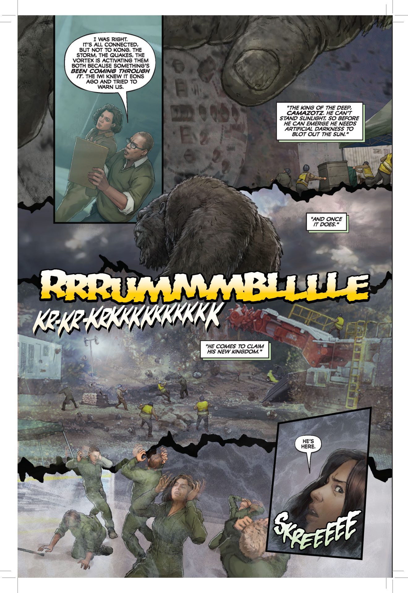 Kong is illustrated very well. In every panel in which he appears, his might and majesty are readily apparent. He doesn’t look much like an actual gorilla but luckily, he also doesn’t look like a guy in a gorilla suit. One complaint I have with the artwork is that there are a few points in the story where it’s hard to tell the flashbacks from events in the present. Each is colored the same and time stamps are rarely used, so there are times when it’s hard to tell the difference between a character’s memories and the scene playing within the current storyline.