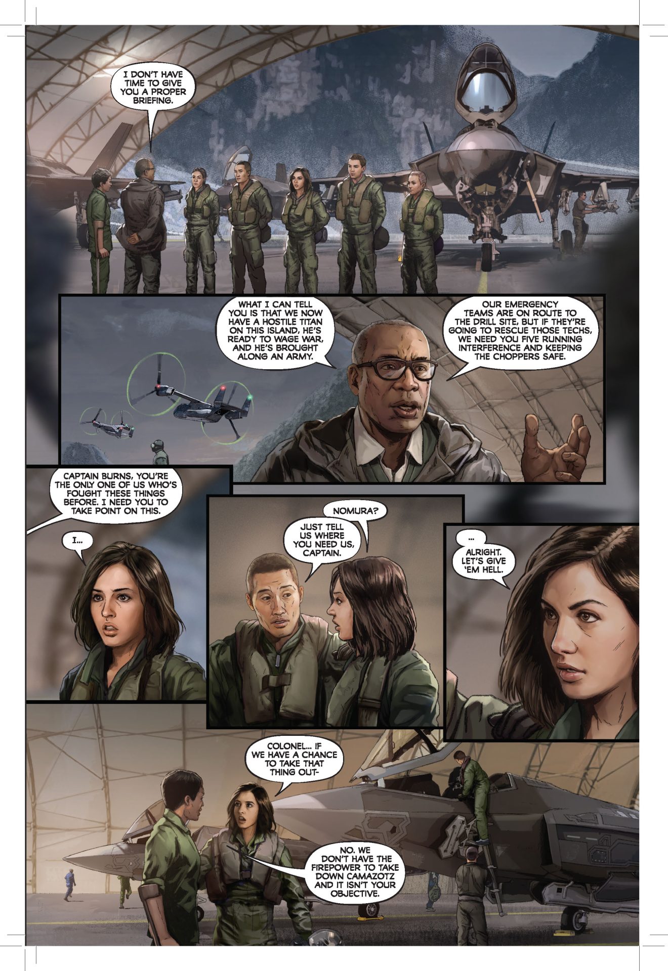 The realism of the characters is further enhanced by Zid’s artwork. I always appreciate when an artist pays attention to the light source in each panel. This is something that Zid excels at throughout the graphic novel. He also expertly scales the kaiju. It’s easy to tell the size of figures relative to one another. This provides clarity to the scope of characters featured in each panel and gives the reader a real sense of the size and power of the kaiju.