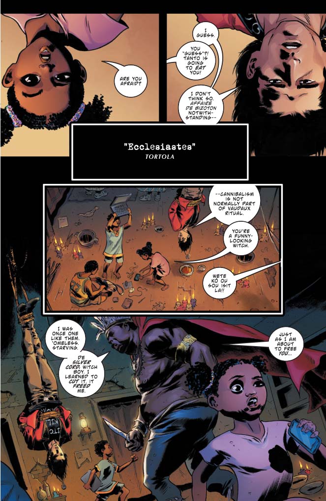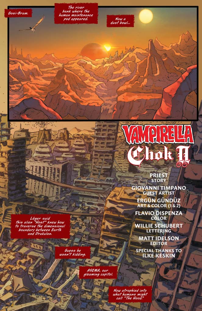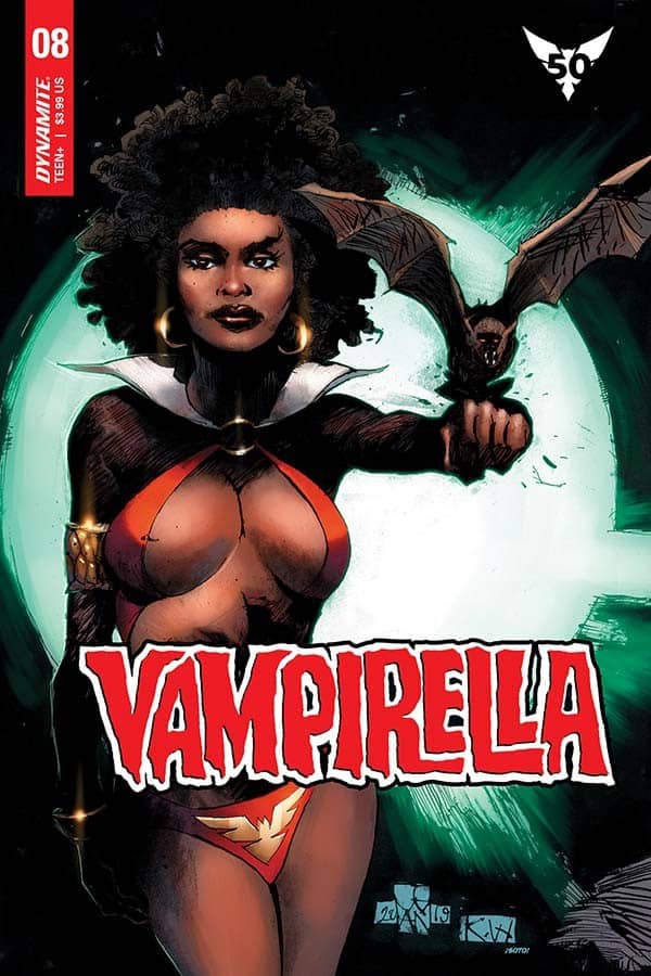 Remember our Free Comic Book Day preview, Vampirella #0? Want to know exactly what was going on there? The story comes full circle here, and you won’t want to miss it!Mysterious alien creatures secreted within the mountains of the British Virgin Islands capture Vampirella and transport her home to Drakulon just as Vampi’s best bud, Benny the Witch, is about to become a human sacrifice. Will Vampirella give up life on her home world to save yet another human? Will Benny be the guest of honor at a native barbecue?