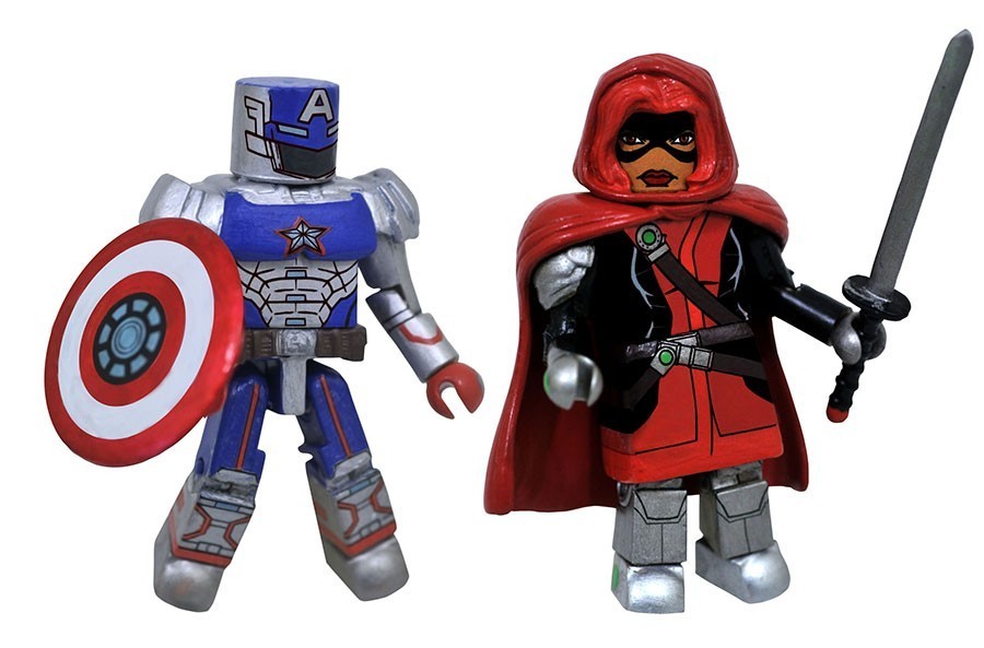 Two original characters from the game, Guillotine and Civil Warrior, have been turned into 2-inch Marvel Minimates, each with 14 points of articulation and character-specific accessories. The French-Algerian vigilante Guillotine comes with her sword, La Fleur du Mal, which thirsts to punish the guilty; the mysterious Civil Warrior, believed to be an alternate reality’s Captain America, comes with his repulsor-tech shield.