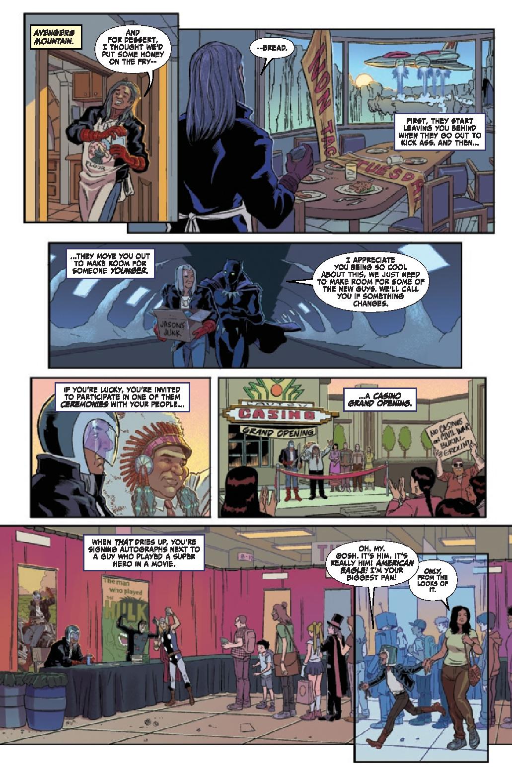 The issue features a nice mix of characters and creators involved. In ”The Unexpected”, Warpath and few of the Native American X-Men fight off a threat to a reservation showing the world they will go wherever they are needed. In “SnowGuard: The Tuurngait’s Song”, Snowguard calls on some long dormant guardians to fight off an ancient evil. In ”American Eagle: Not Dead Yet”, a retired hero, finds out he still has some fight in him, when he breaks up a robbery and proves his mettle. In the last story ”River: A Friend In Need”, River has a special power and it has to do with dead people, something that often gets him in a trouble but one that leaves a boy missing.