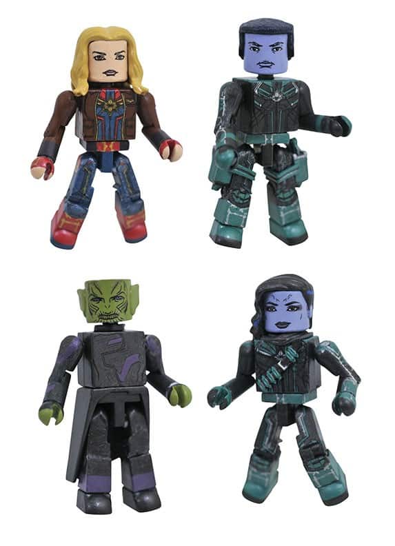A Diamond Select Toys release! One of the most anticipated movies of 2019 is almost here, and DST is offering an all-nrew bosx set of Marvel Minimates based on it! This four-pack includes Captain Marvel, Kree soldiers Att-Lass and Minn-Erva, and the Skrull Nuro! Each 2-inch Minimates mini-figure features 14 points of articulation and fully interchangeable parts. The set comes packaged in a full-color window box. Designed by Barry Bradfield! (SRP: $24.99)