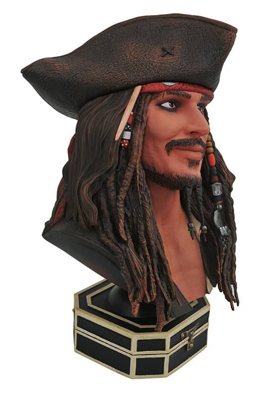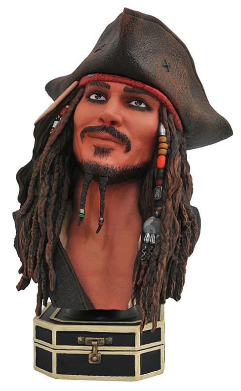 A Diamond Select Toys release! It’s the ultimate treasure for any pirate! Those who love the Pirates of the Caribbean films will be sure to parlay for this Legends in 3D bust depicting scallywag Captain Jack Sparrow. Featuring the likeness of actor Johnny Depp, this approximately 10-inch resin sculpture is limited to only 1,000 pieces, and comes packaged in a hand-numbered, full-color box with a certificate of authenticity. Designed by Joe Allard, sculpted by Rocco Tartamella. (SRP: $150.00)