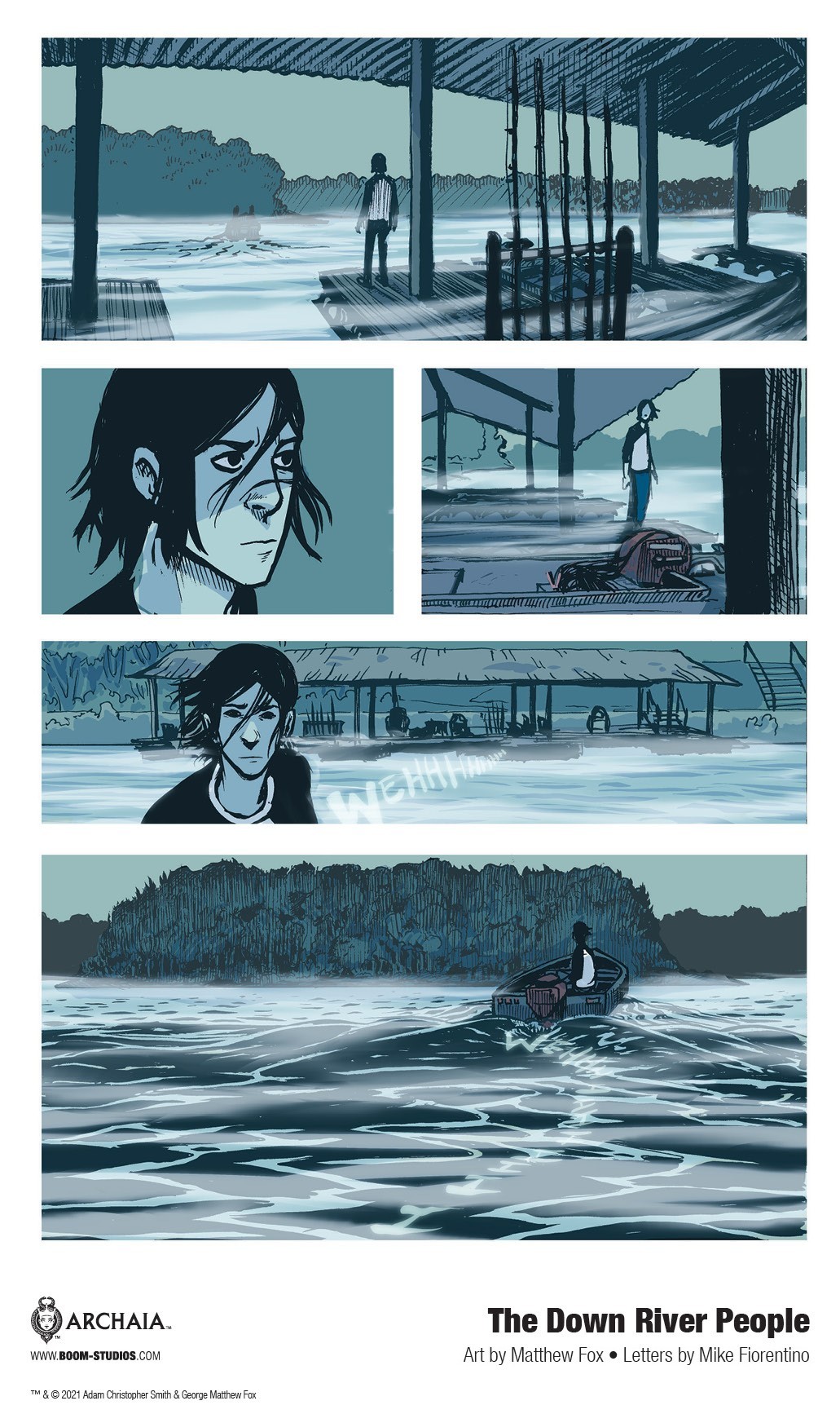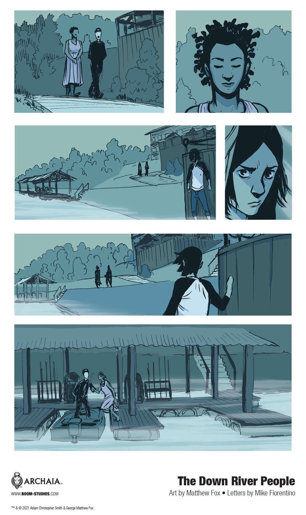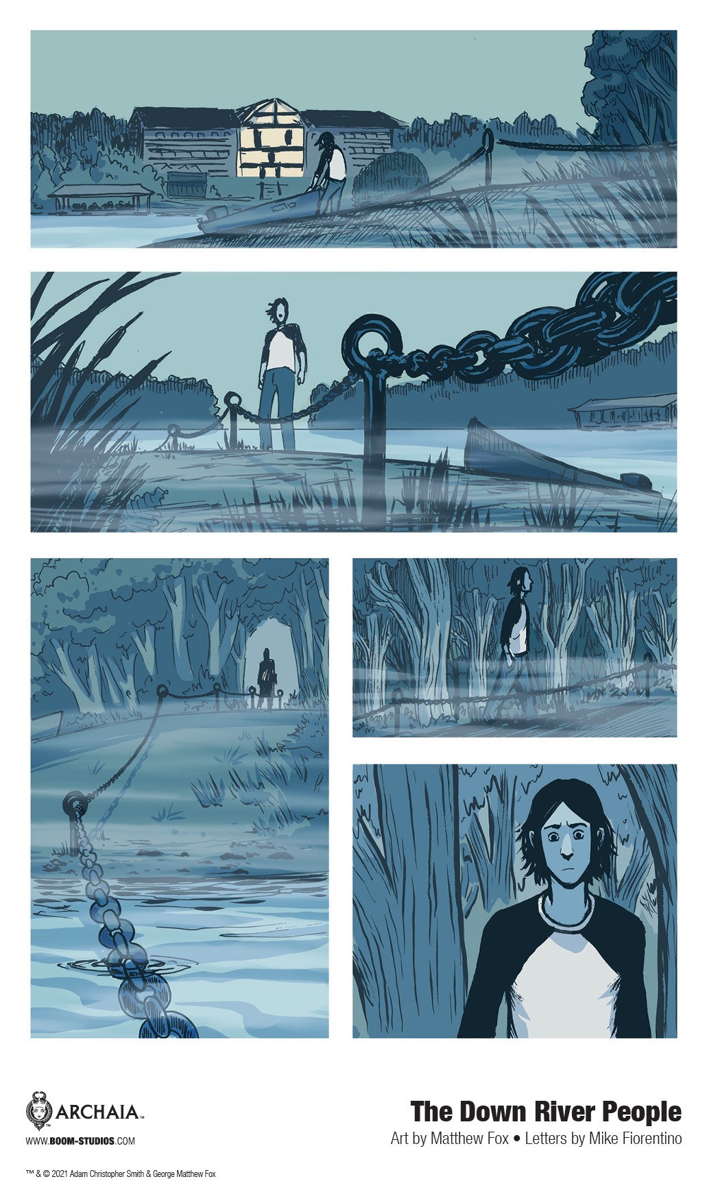 BOOM! Studios has revealed a brand new look at the original graphic novel The Down River People— reuniting writer Adam Smith and artist Matthew Fox, creative team of the Eisner and Harvey Award-nominated Long Walk to Valhalla, with letters by Mike Fiorentino for a riveting new story about a man attempting to survive the complicated and dangerous web of his family’s dark past with his soul intact, available on May 16, 2021.