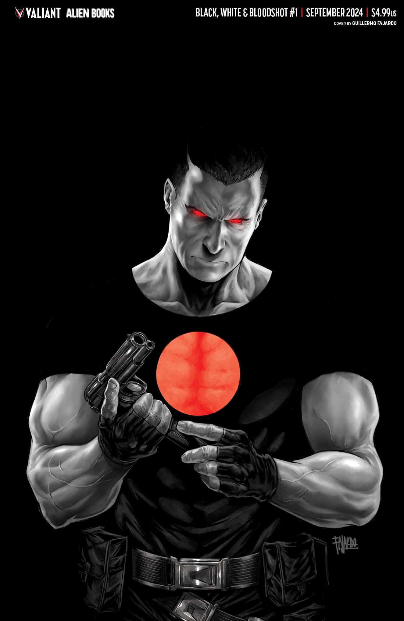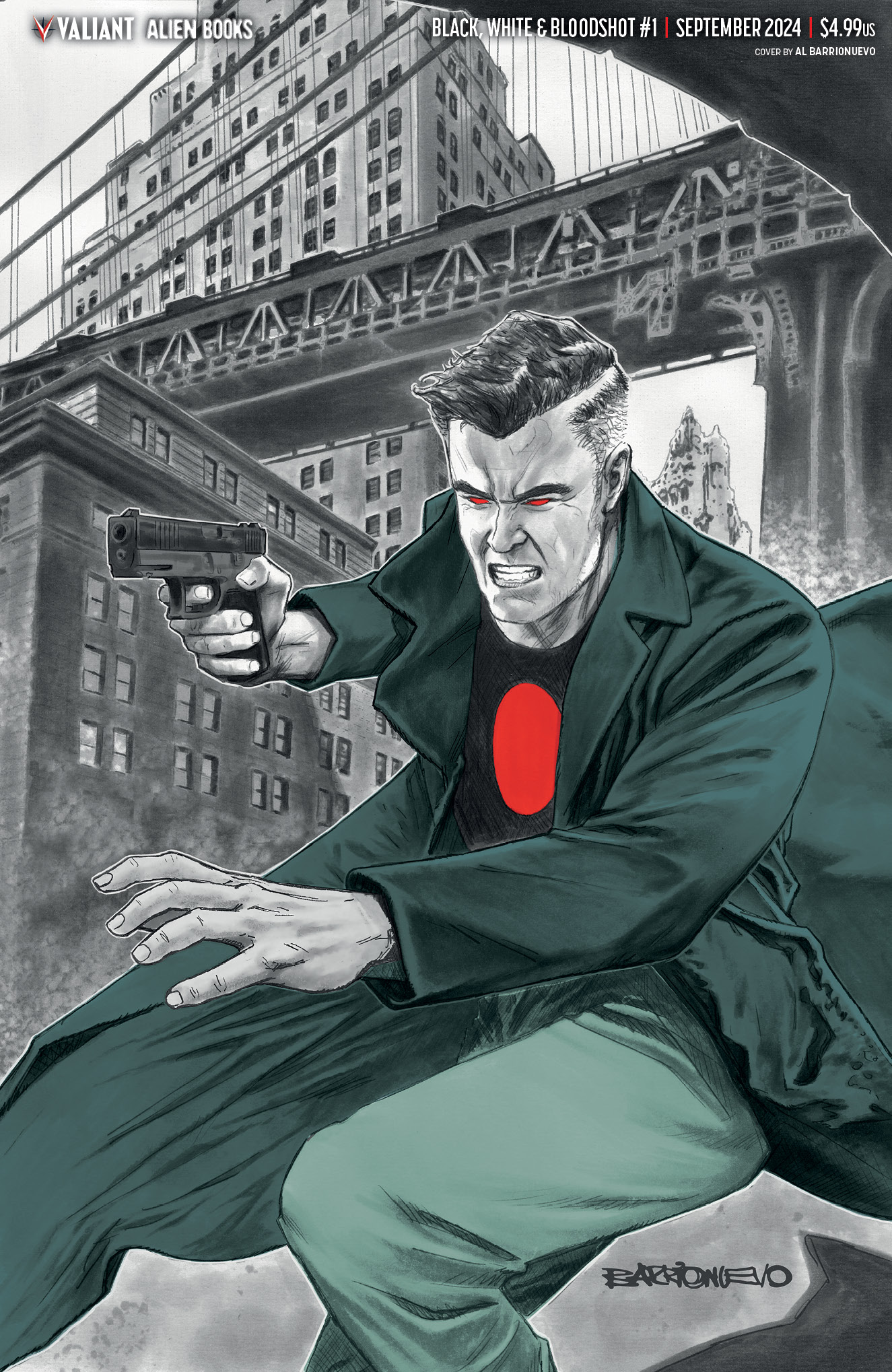 Enter the world of Bloodshot in this brand-new Black, White, and Blood anthology! Meet Bloodshot, the world’s deadliest assassin! A super soldier engineered with Nanites, a versatile nanotechnology that allows Bloodshot to repair the damage inflicted on his body, change his appearance, and control machines.