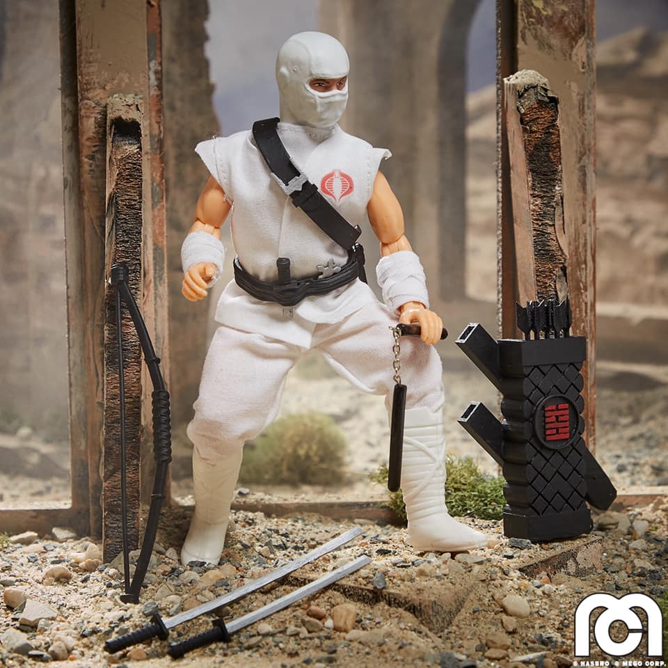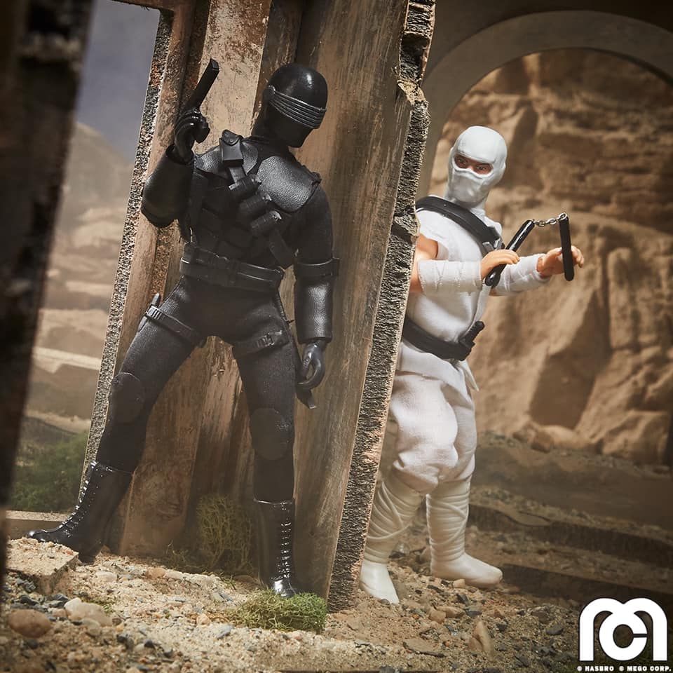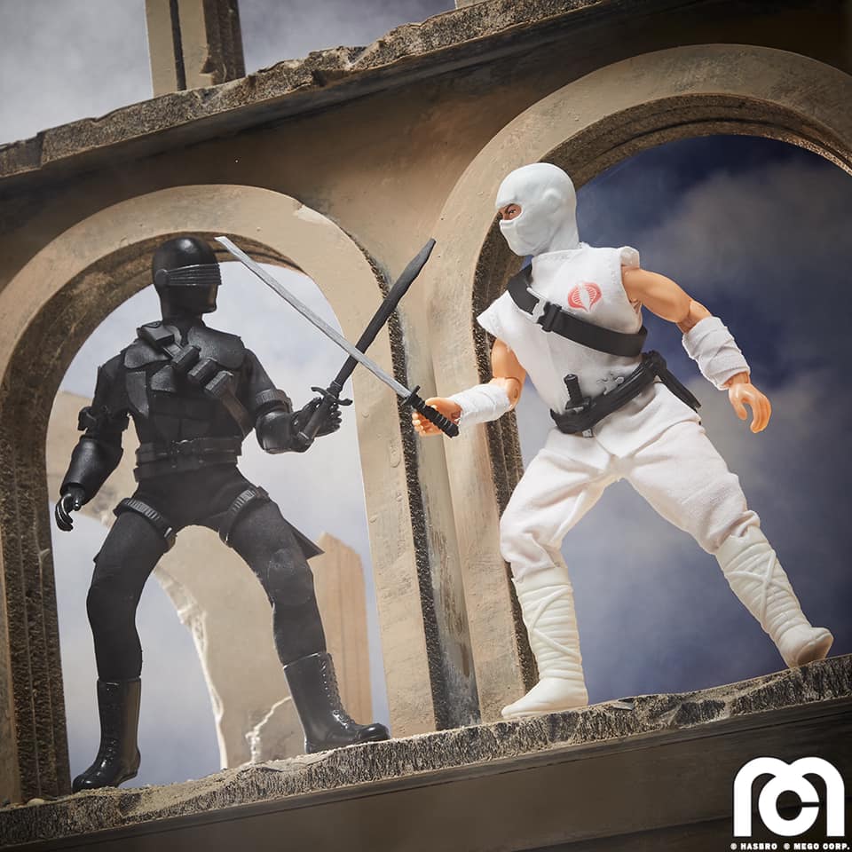 Yo Joe! Mego and Hasbro are combining G.I. Joe and Mego! Available now in a two-pack, Storm Shadow and Snake Eyes are the first two G.I. Joe figures that are being released as Mego figures. They feature 26 points of articulation with an all-new bandless body.
