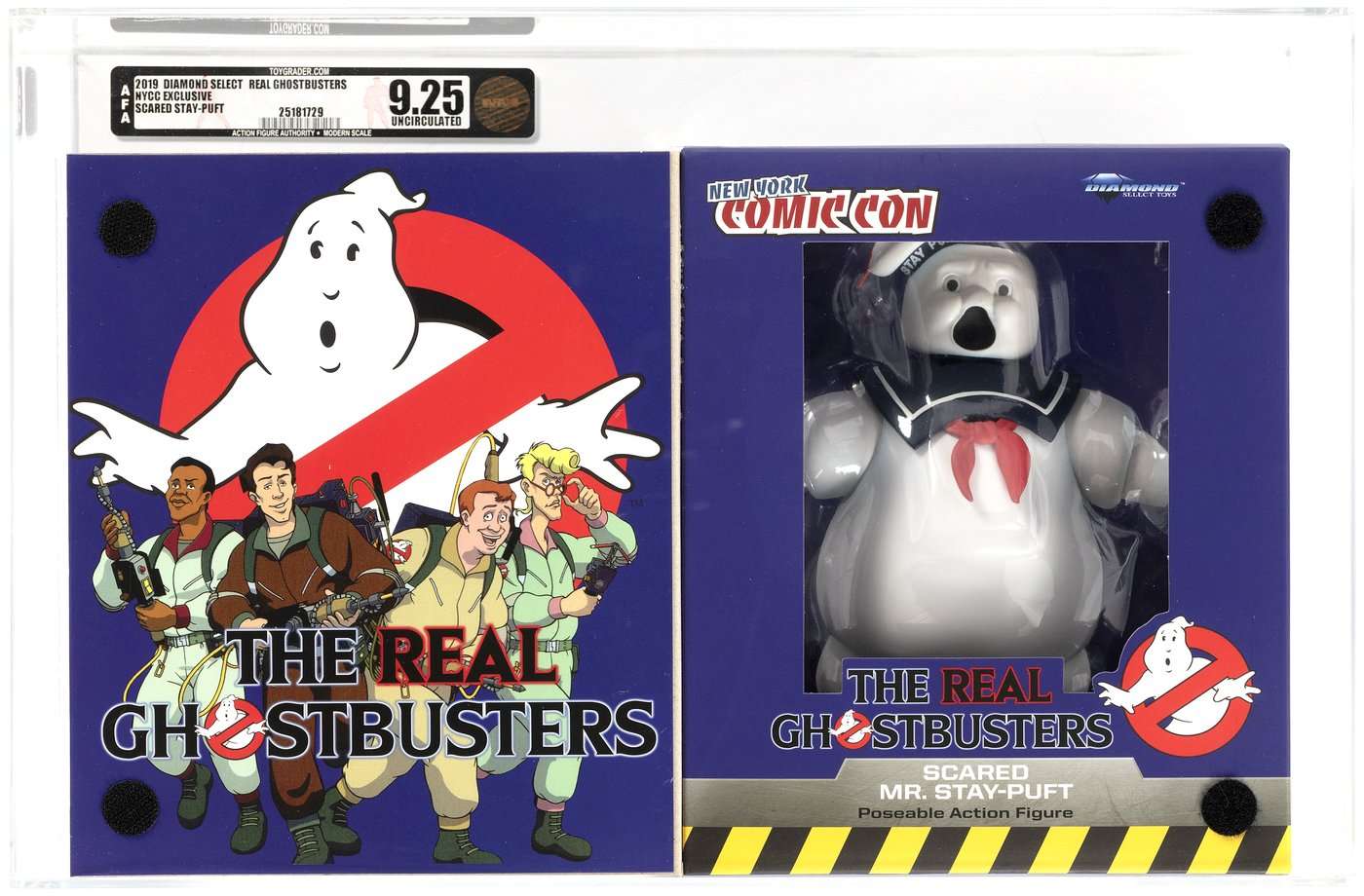 While the Hake’s auction has a variety of vintage Ghostbusters toys on the block, including an Ecto-1, it’s also got a modern Ghostbusters toy! The NYCC-exclusive Scared Mr. Stay-Puft was the last figure released in the popular Real Ghostbusters toy line by Diamond Select Toys, and this graded example was encased with its flap open, so you can see the figure AND the interior box art of the four Busters. Only 500 were made!