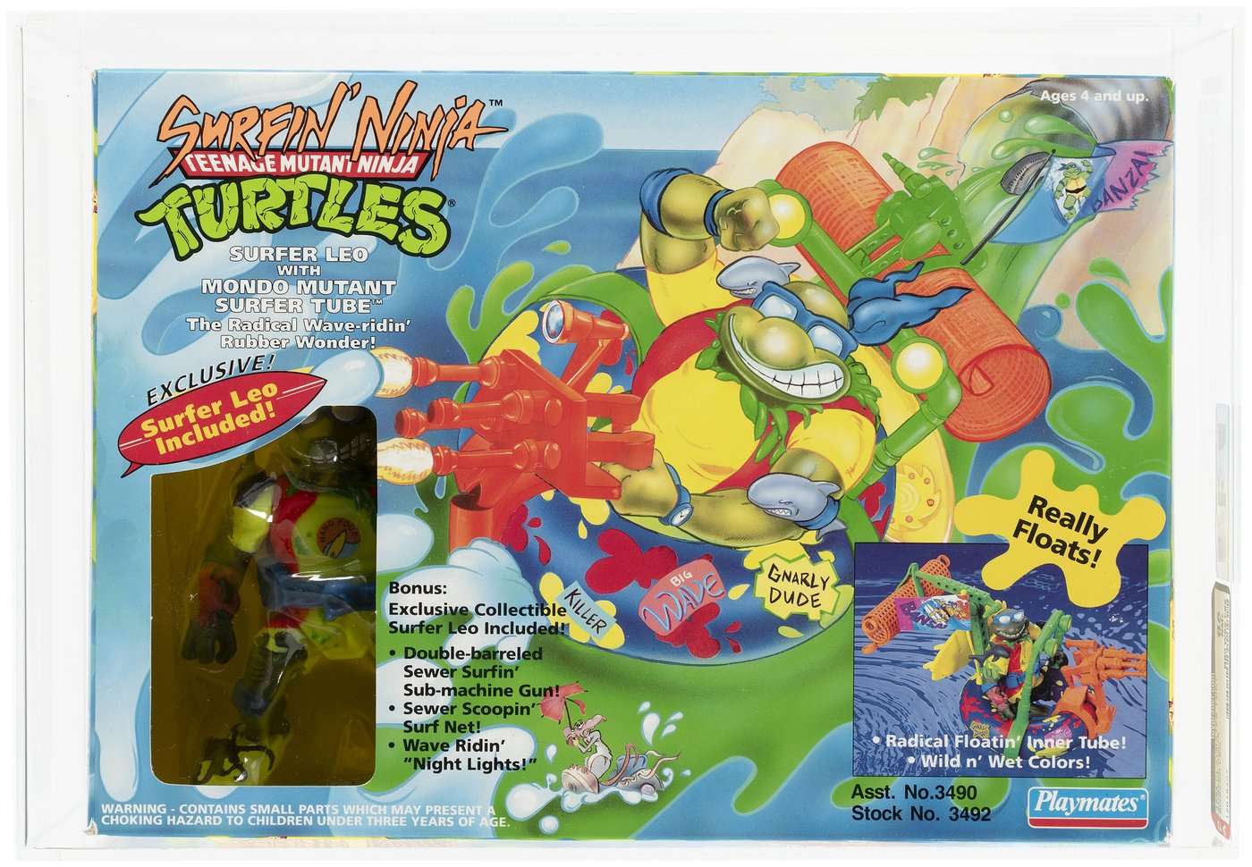 The important thing to remember about the “Surfin’ Turtles” subset of the Teenage Mutant Ninja Turtles is that they lived, not in California, but in New York City. In the sewers. Now, we’re pretty sure there is surfing in the greater tri-state area, but we suspect most of the surfing was done in the raw sewage flowing under the city. At least with this “Surfer Tube,” which actually floats, there is less of a chance of getting accidentally submerged in the stuff. Looks like Leo was the smart one.