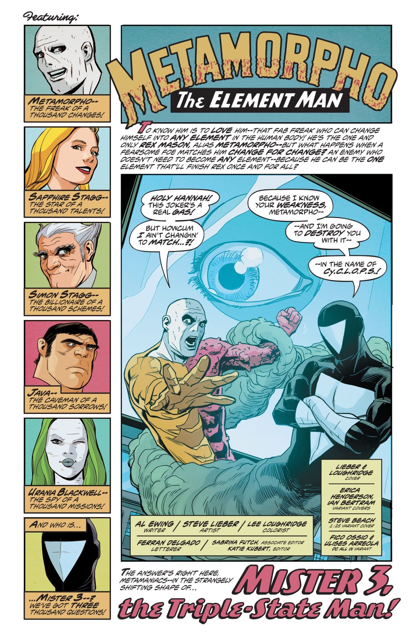 Metamorpho: The Element Man #1 will be released on December 25 by writer Al Ewing, artist Steve Lieber, colorist Lee Loughridge, and letterer Ferran Delgado. You can follow Al on social media @al-ewing or by subscribing to his newsletter https://al-ewing-writes-comics.ghost.io/. You can also follow Brant Lewis on Bluesky @brantlewis.