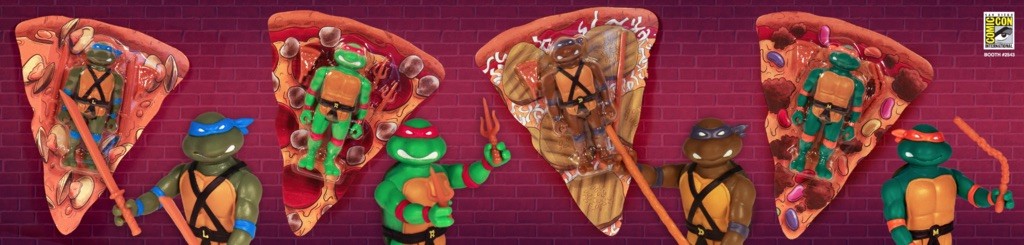 The Teenage Mutant Ninja Turtles ReAction Figures Pizza Power Four-Pack is available only from Super7 at San Diego Comic-Con, $75 per set.
