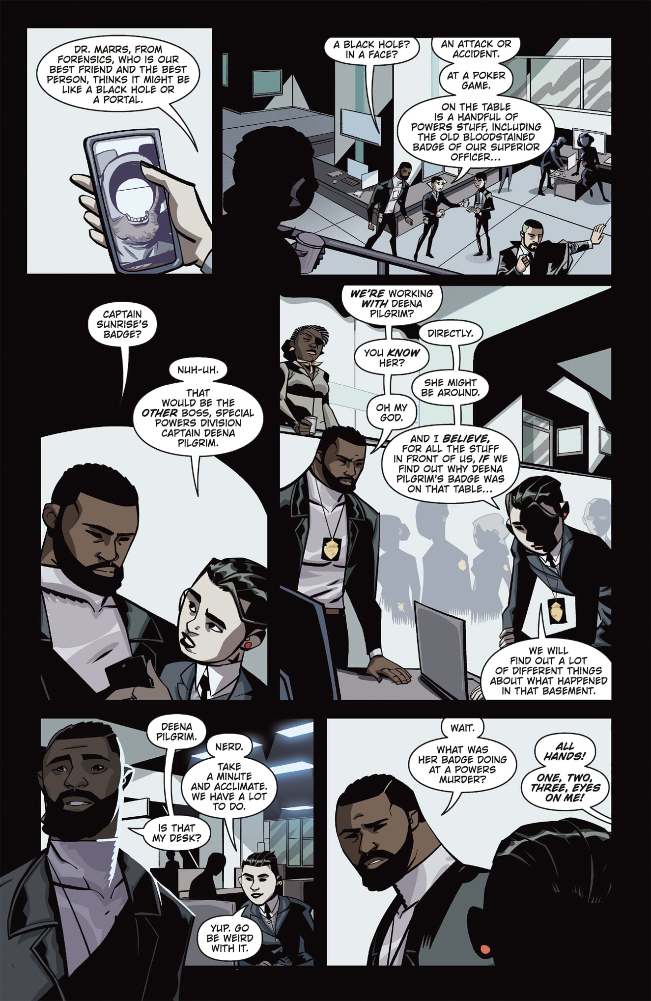 The original creators of POWERS have returned with a brand-new case featuring brand-new secrets from the POWERS universe. With Detective Kutter tackling the interrogation of super-science super-genius Archie Gates, rookie Detective Moon teams up with veteran Powers all-star Deena Pilgrim to solve the case before it gets taken away from Powers by higher ups of the government. There is a cover-up. They can feel it. Now they have to prove it.
