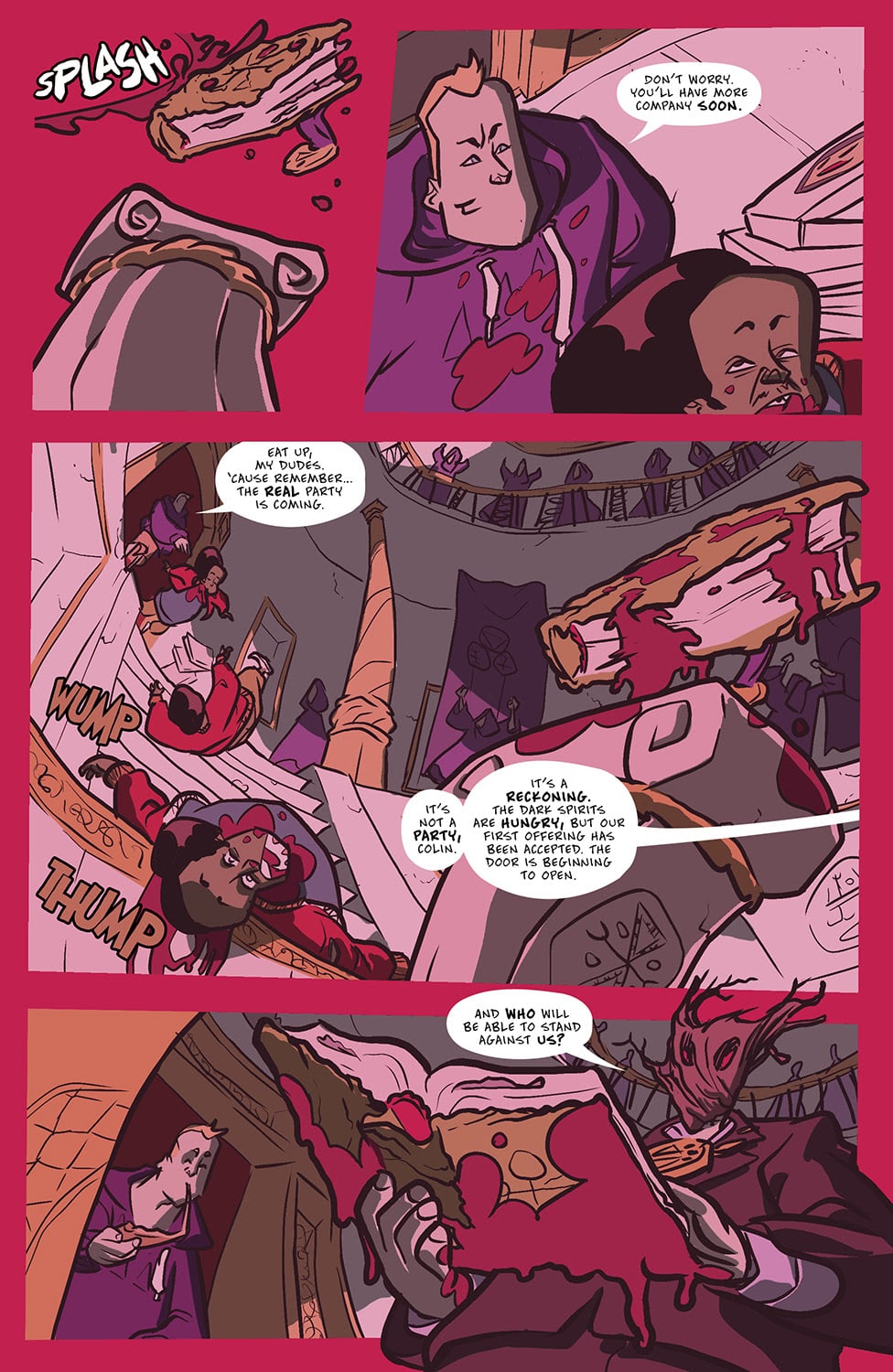 J. Holtham, an esteemed playwright, TV writer, and producer, joined the project with his first creator-owned comic The Horizon Experiment: Motherf*ckin’ Monsters, co-created by African-American cartoonist Michael Lee Harris, creator of Black Hitler and Choco Leche. The Horizon Experiment: Motherfu*kin’ Monsters is like Evil Dead for blerds, a love letter to Sam Raimi and Edgar Wright set to a Wu-Tang soundtrack. Fans of Bitter Root and Chew will enjoy this meta horror comedy full of quips and gore, in which a nerdy Black kid from Brooklyn and his friends stumble upon demon-worshipping frat assholes trying to take over the world.