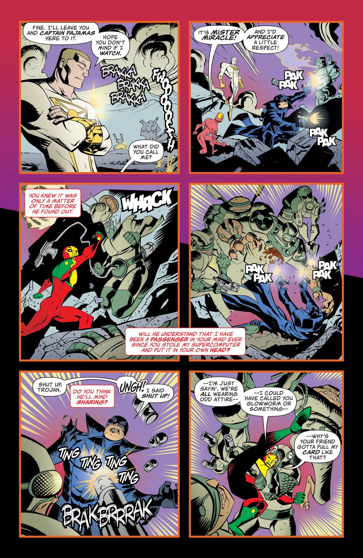 On the other hand, Janin uses tighter grids in conjunction with Bellaire’s intense flat colors to show any time Authority members are stressed out or in real danger like when Natasha Irons has to switch armor while fighting alien refugee Siv, who is not so bad in the end. There’s real power behind the punches and kicks with Mikel Janin adding speed lines and energy bursts to his clean figure work. Kirby Krackle meets ligne claire and all is right with the world as he, Morrison, and Jordie Bellaire embrace the fun, bombastic side of superhero comics while also shifting the paradigm just a little bit.