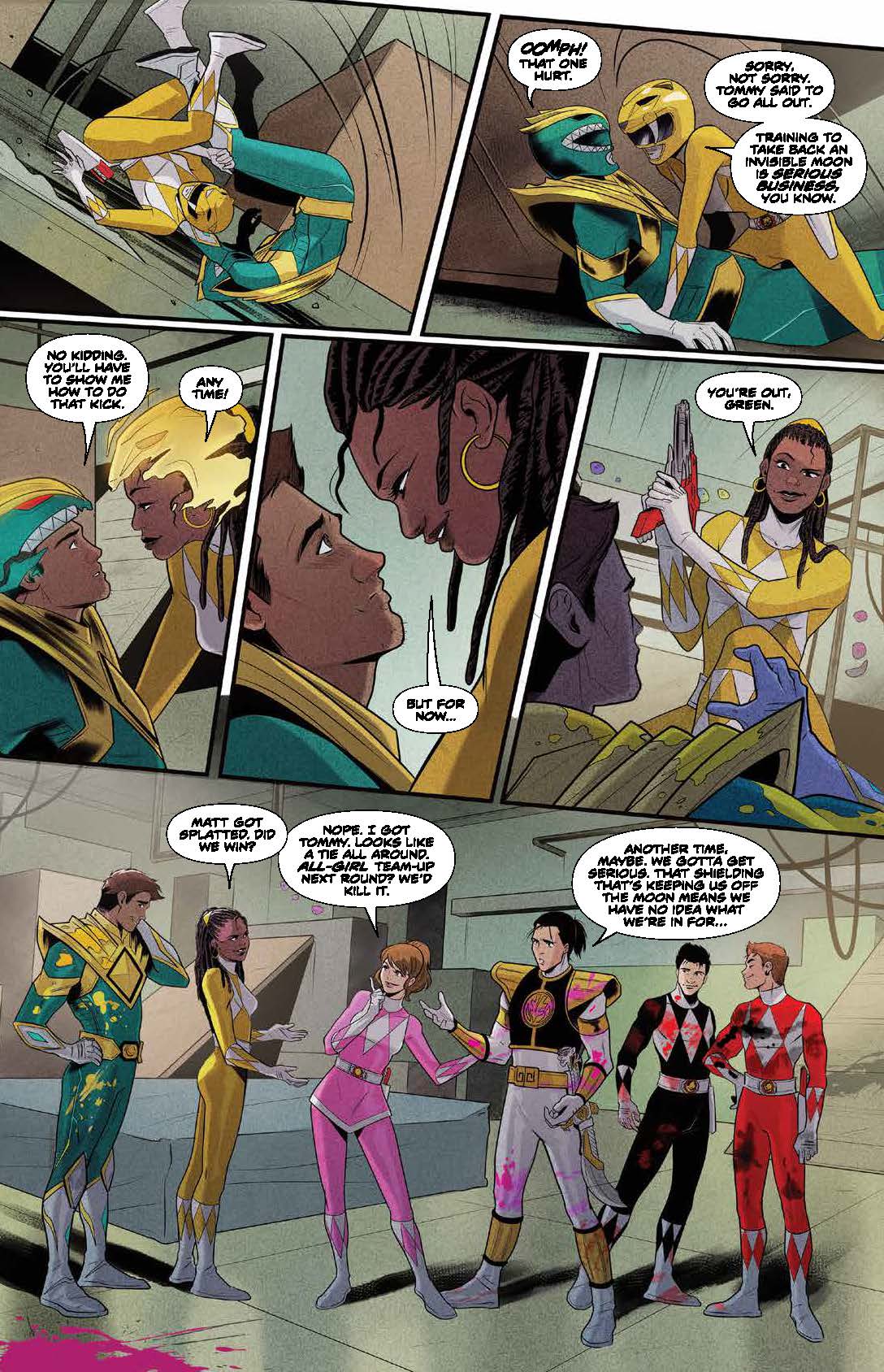 From there, the comic focuses on a mysterious woman who is on the run from soldiers and we later learn is the last in a family line of Power Rangers. We learn the history of this new world with teases and winks as to everything that came before. VR Troopers and more are touched upon as we get settled into this new normal.