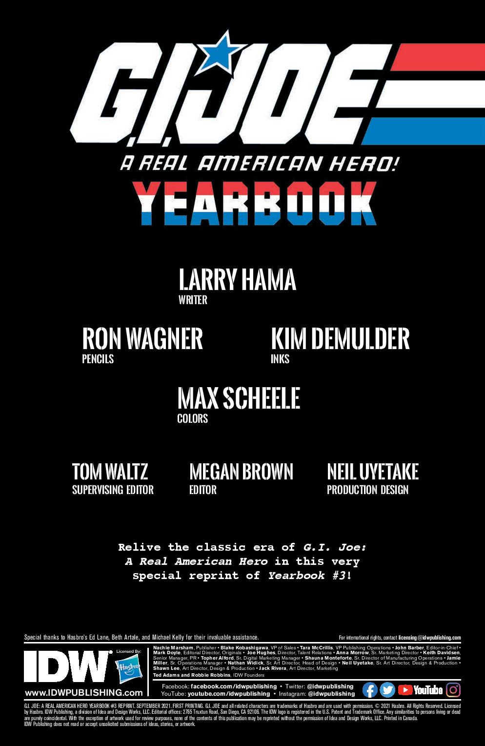 Relive the classic era of G.I. Joe: A Real American Hero in this very special reprint of Yearbook #3. Featuring the classic tales “Hush Job” and “My Dinner with Serpentor” — plus TONS of extras — Living Legend Larry Hama and his top-notch team of artists take us on an unforgettable journey that features spies, ninjas, soldiers, swords, guns, and… PIZZA! It’s all here in this must-have comic for long-time collectors and new fans alike. Includes a brand-new cover by superstar-artist-in-the-making Roi Mercado!