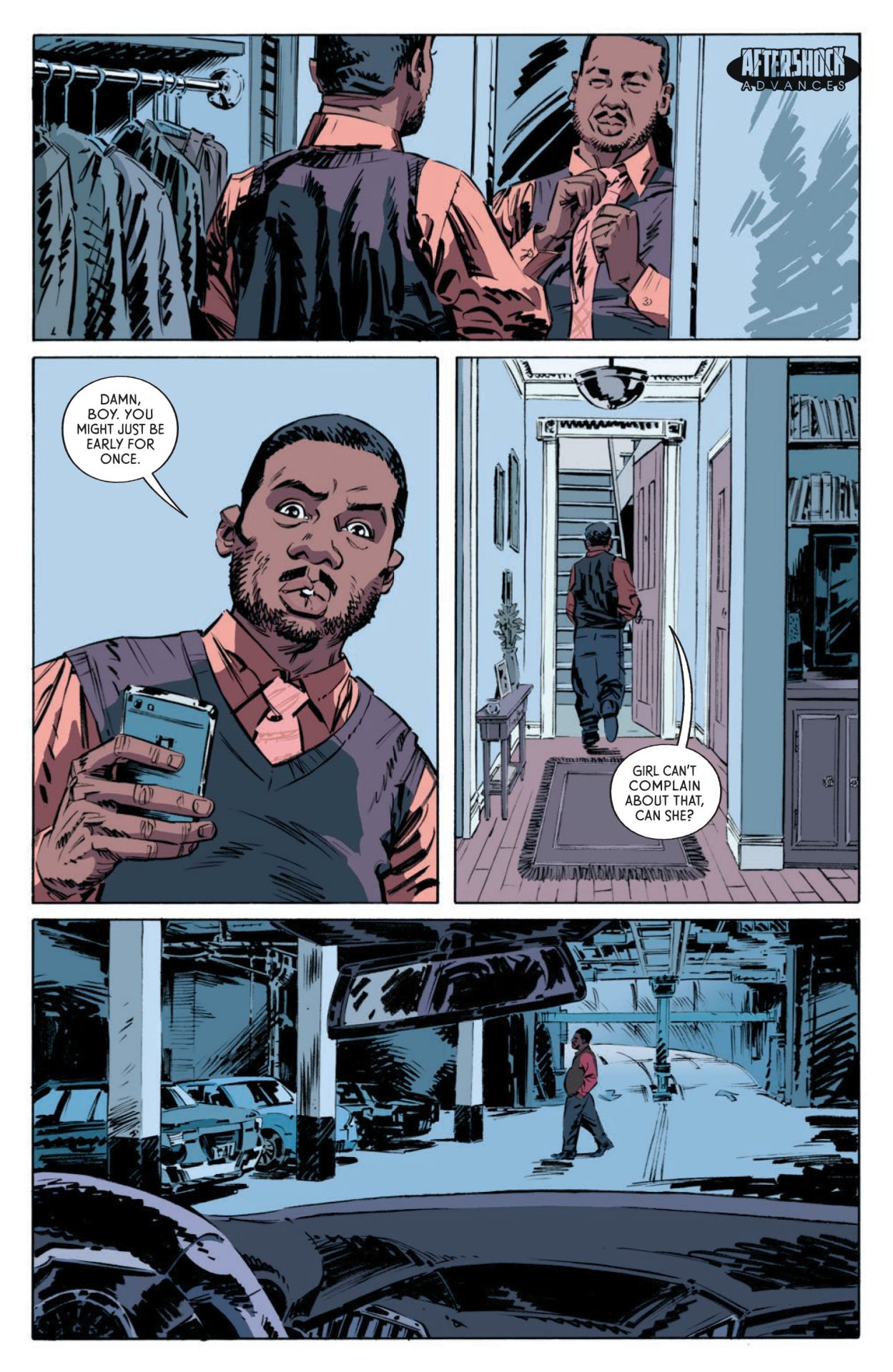 Miles to Go #1‘s greatest strenght is its focus on Amara and her life. This is a mother who is trying to juggle a pending divorce, her life, and raising a child. It’s not until a bit into the comic that Amara’s troubling life becomes clearer and we realize she’s doing all of that while escaping trauma and crimes. And then that ending and a big question as to what’s next. It’s a fantastic set up and knock down of a character and story leaving the reader unprepared for where the comic goes.