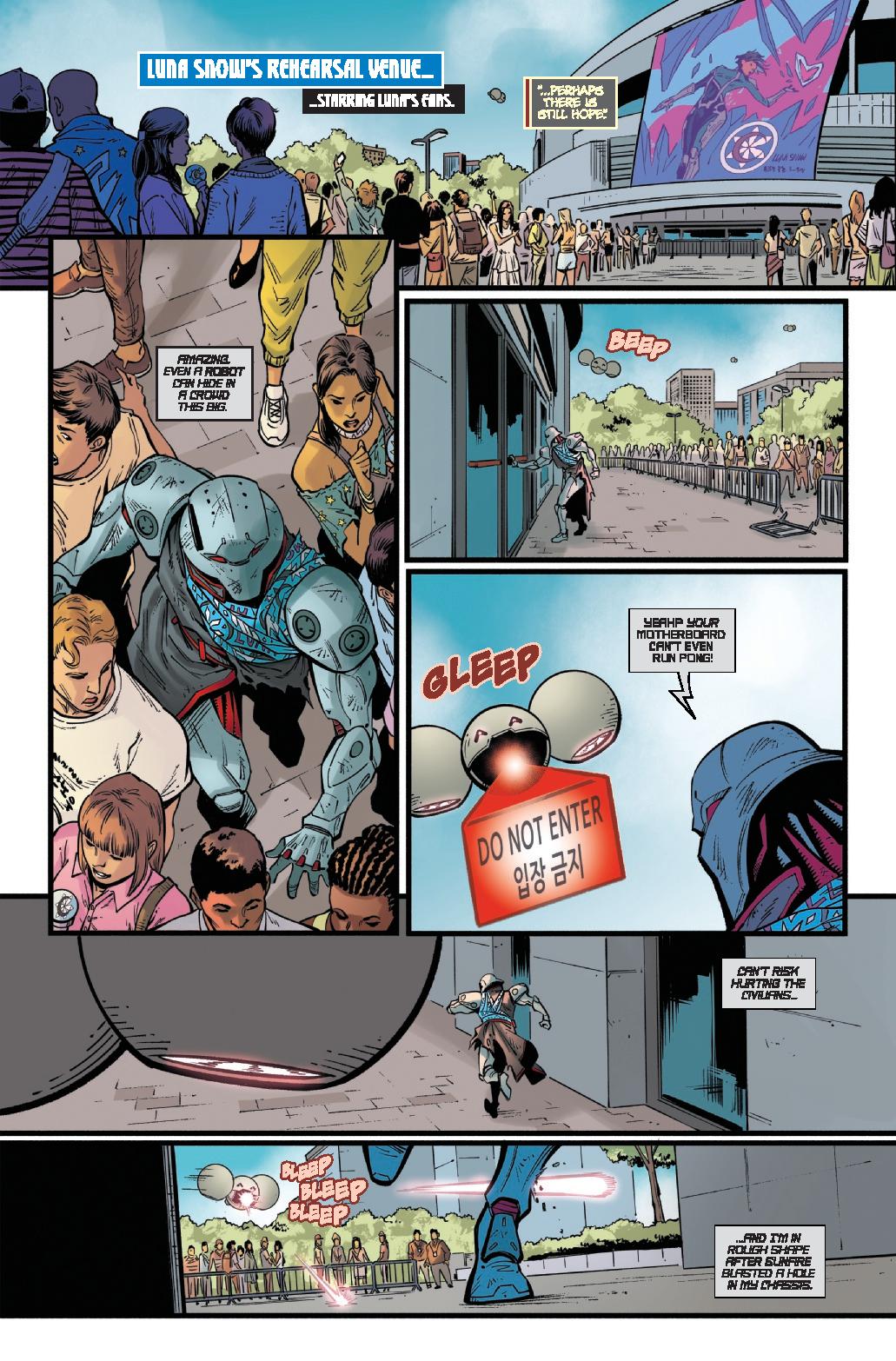 Thunderbolt Ross has escaped Doctor Doom’s dungeon, but the wounded general is too weak to turn into the Red Hulk. In the hostile, snowbound Latverian mountains, Ross, Machine Man and Deathlok are relentlessly chased by an army of Doombots! Will these heroes survive this issue’s explosive ending?!