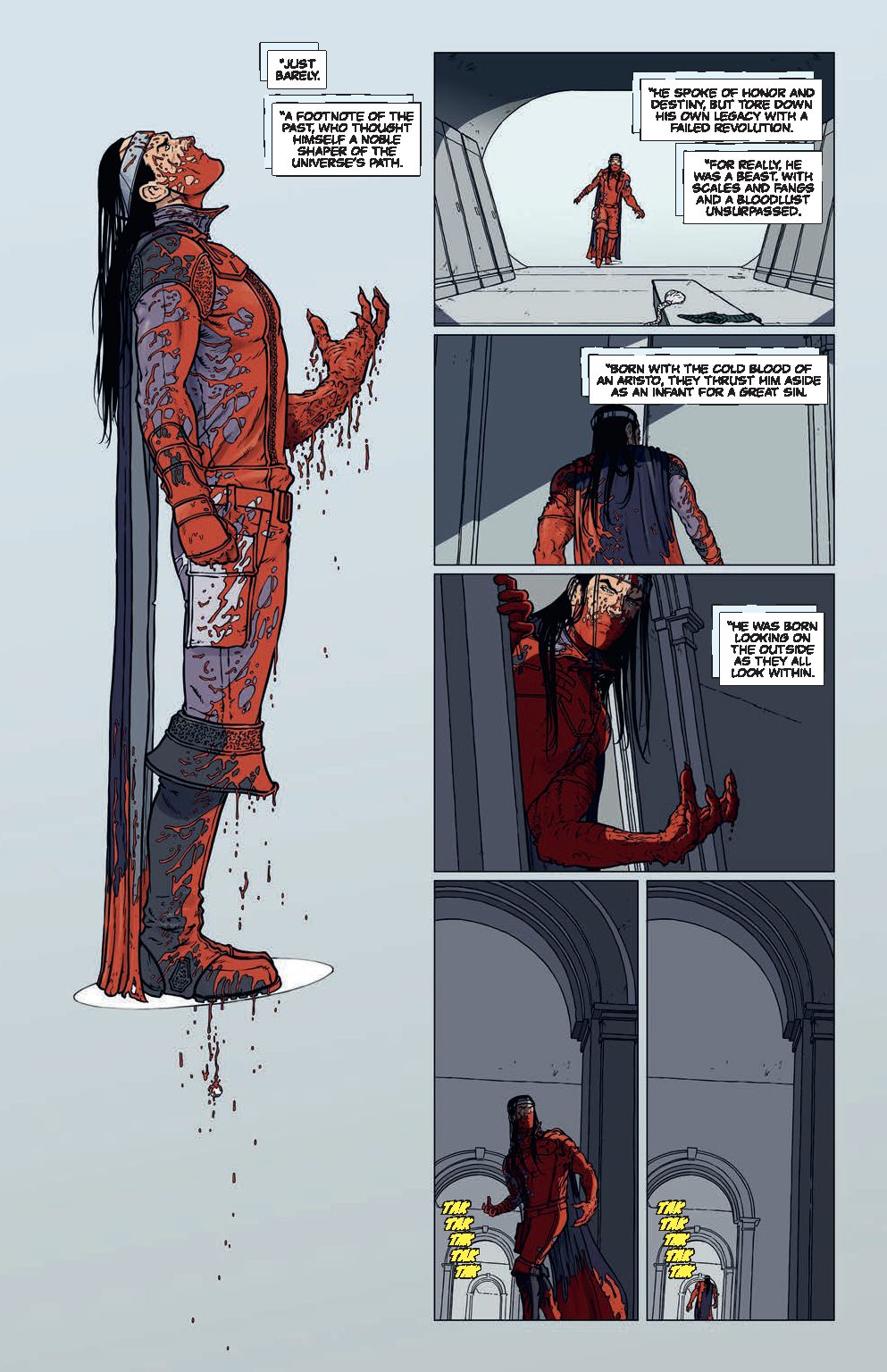 From actor and entrepreneur Dylan Sprouse, Suneater #1 kicks off a nine-issue saga that takes place in ninth century Norway, where a drug-addled warrior sacrifices his leg to the Gods. In return he is fused with a parasitic beast, giving him the power to rescue his son from his sworn enemies—history’s first Norwegian king and his five personal guards. The result is a grim and bloody adventure—a dark metaphor for drug addiction, selfishness, and the children it affects.