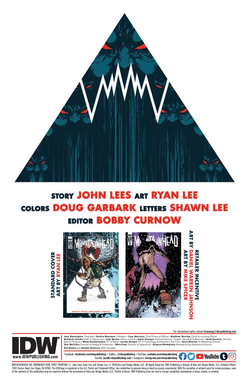 Mountainhead #1 (IDW Publishing) – A father and son are nomads who think the government is after them. A lone survivor of a climbing expedition is covered in blood. The two will collide in this intriguing debut.