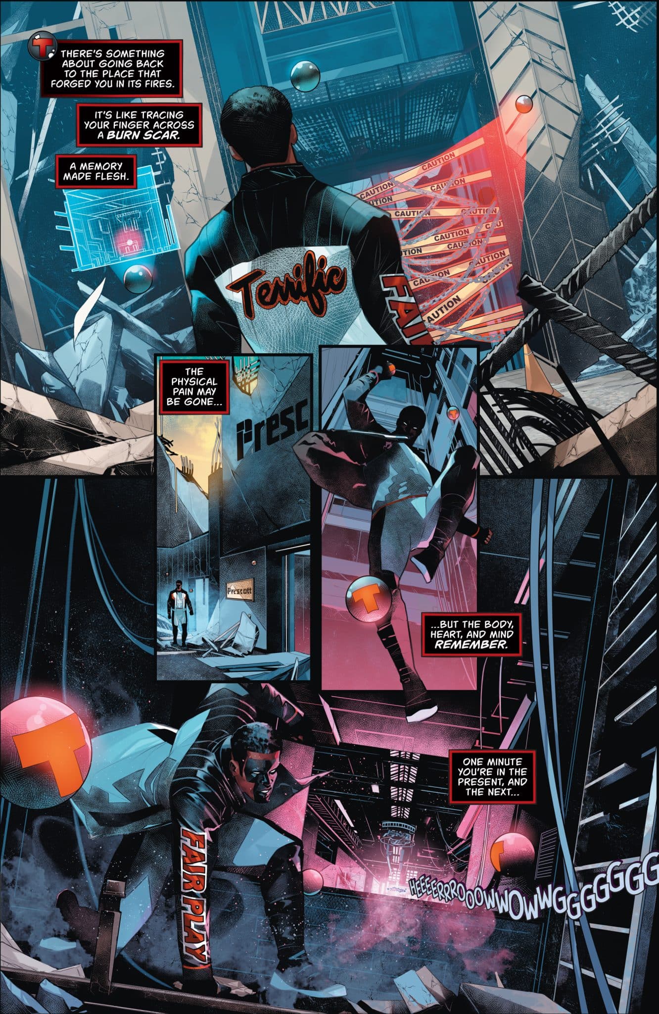 I honestly don’t know much about Mr. Terrific. He has always been a character that’s been in the background of the comics I’ve read and even when he was more of the title character, it felt like it was more in a team sort of way. So, Holt’s history is rather vague for me and going into Mr. Terrific: Year One #1, I wanted to get a better sense of the character and motivations. I know of the tragedy, at least small details of it, but beyond that very little of the character.