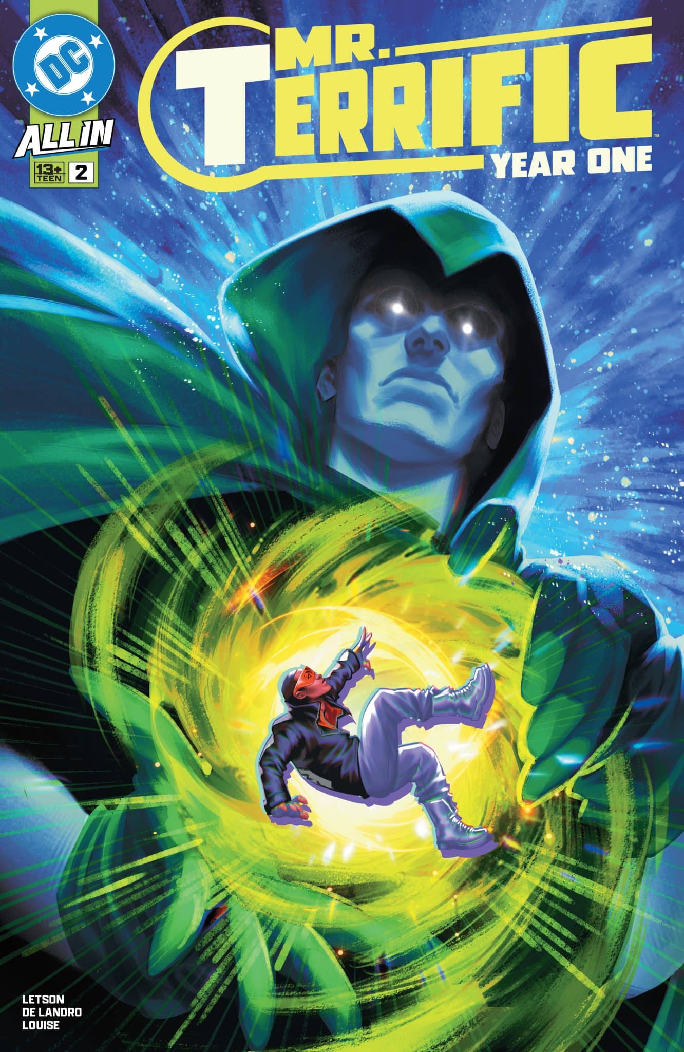 Brilliant young inventor Michael Holt’s life was destined for greatness…yet everything screeched to a halt when his wife Paula and unborn son were killed in a car accident. The Holts once shared ambitious dreams of using their technology to help others, but after the tragedy, Michael retreats from society and sells Holt Industries to mysterious and craven tech billionaire Athena Prescott. The domino effect of Michael’s actions set off an explosive chain of events that take a not-so-ordinary man from the depths of despair to the heights of heroism! Meanwhile, in the present day, Mr. Terrific continues his research into what became of Darkseid after the events of the DC All-In Special…and comes to realize that his past and the present might be inextricably linked… Mr. Terrific: Year One #1 is a retelling of the character’s past, expanding his origin and focused on the future.