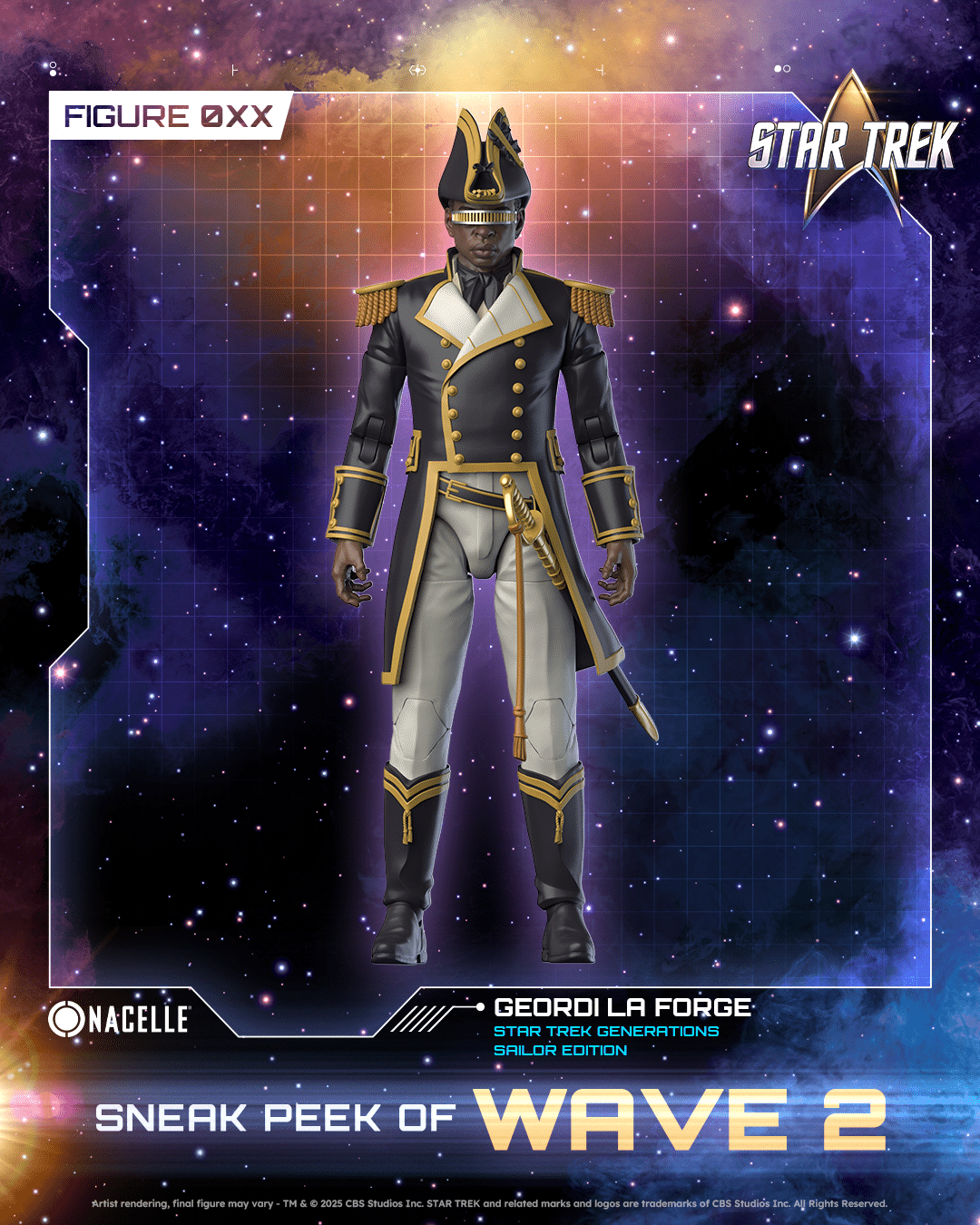 Nacelle has revealed a first look at the renders and prototype for Romulan Commander, Geordi La Forge (Generations Sailor Edition), Worf (Generations Sailor Edition), and Valeris from wave two of their Star Trek action figure line. The news comes on the heels of a successful San Diego Comic-Con, that saw full lineup reveals for wave three and four, as well as prototype reveals of Kathryn Janeway (“Year of Hell” Edition), Nog (“Favor the Bold” Edition) from wave two, as well as Nyota Uhura from wave three.