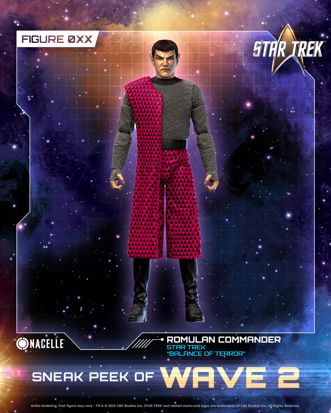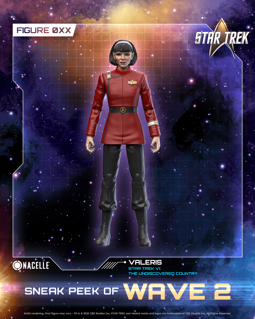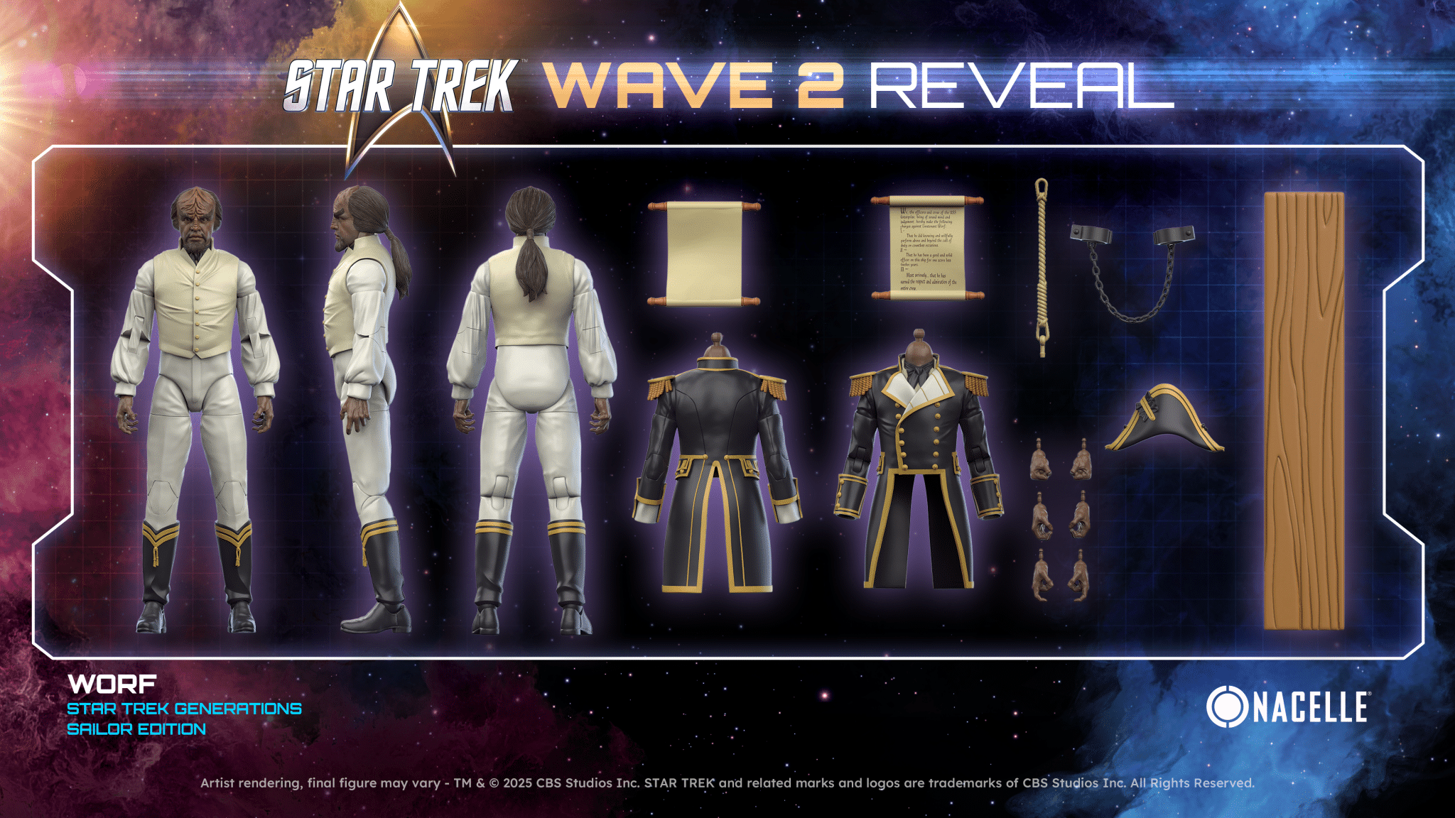 In October 2024, Nacelle announced the complete lineup for wave one at New York Comic-Con, which included Edward Jellico from Star Trek: The Next Generation “Chain of Command”, Weyoun from Star Trek: Deep Space Nine, Rachel Garrett from Star Trek: The Next Generation “Yesterday’s Enterprise”, Hikaru Sulu from Star Trek VI: The Undiscovered Country, Peter Preston from Star Trek II: The Wrath of Khan, Tuvix from Star Trek: Voyager “Tuvix”, Valkris from Star Trek III: The Search for Spock and Mirror Universe Archer from Star Trek: Enterprise “In A Mirror, Darkly”.